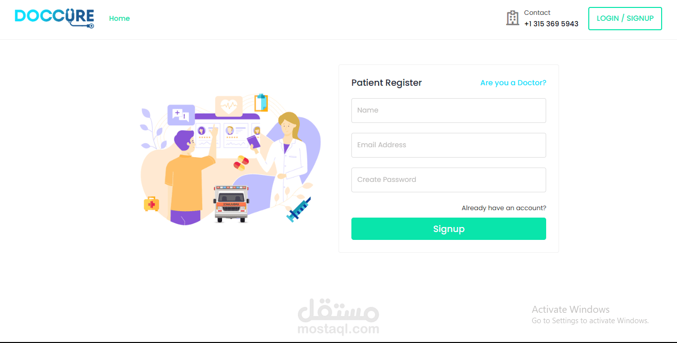 صفحة انشاء حساب : ( المريض & الطبيب )