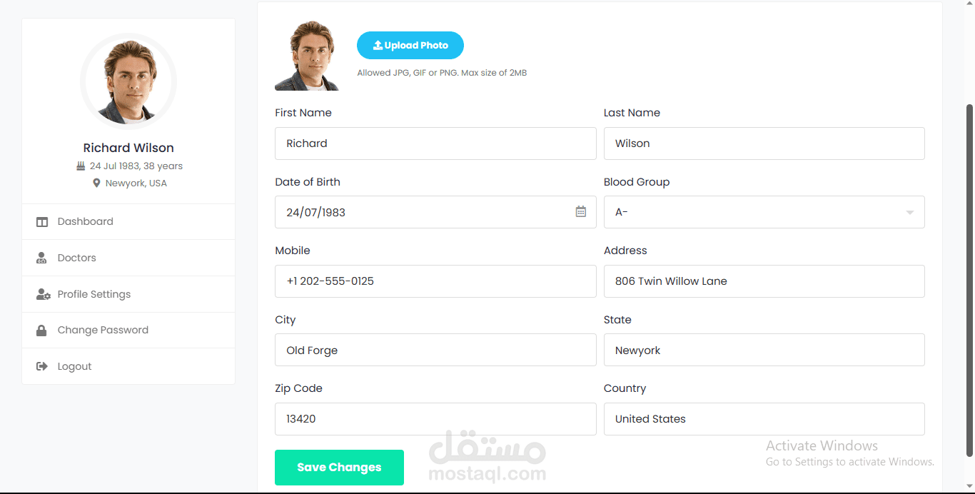 صفحة تغيير البيانات : ( المريض & الطبيب )