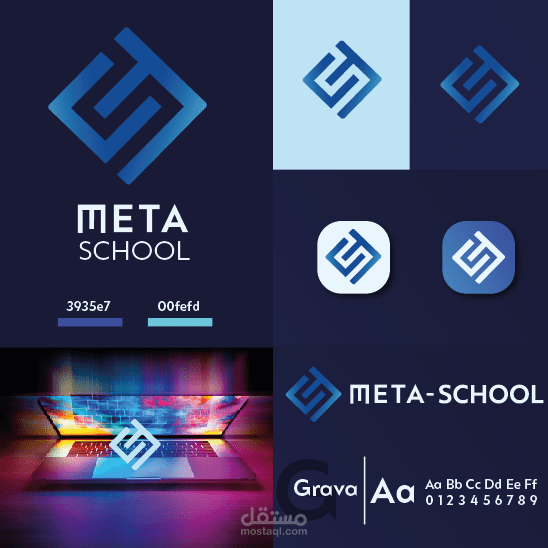 Blue is known to inspire trust, confidence, and a sense of reliability, which are essential qualities in the tech industry. By incorporating this color, the logo design conveys Meta School's dedication to providing a secure and trustworthy environment for students to explore and excel in the realm of technology.also The energizing blue color scheme reflects the school's tech-focused approach and the sense of innovation it brings to the field