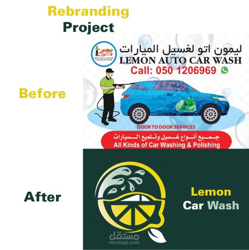 مشروع اعادة تصميم visual identity ل شركه غسيل سيارات بتقنية الليمون وتصميم اللوجو الخاص بها مرورا بعدة خطوات ومراحل وهي:-