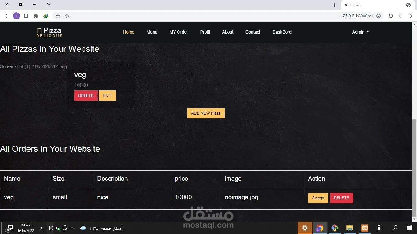 pizza order ... so that the request is transferred to the admin where the admin can,