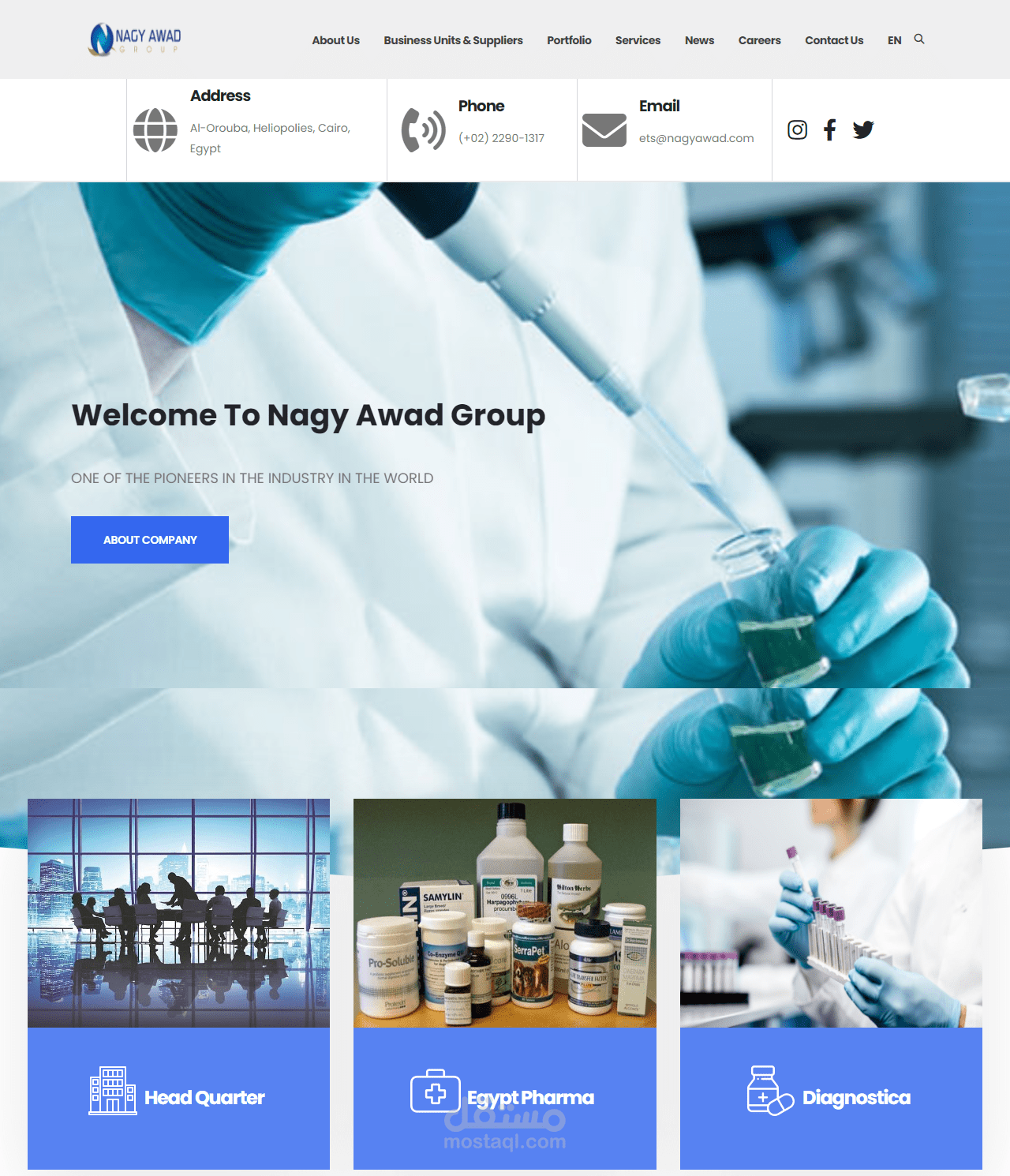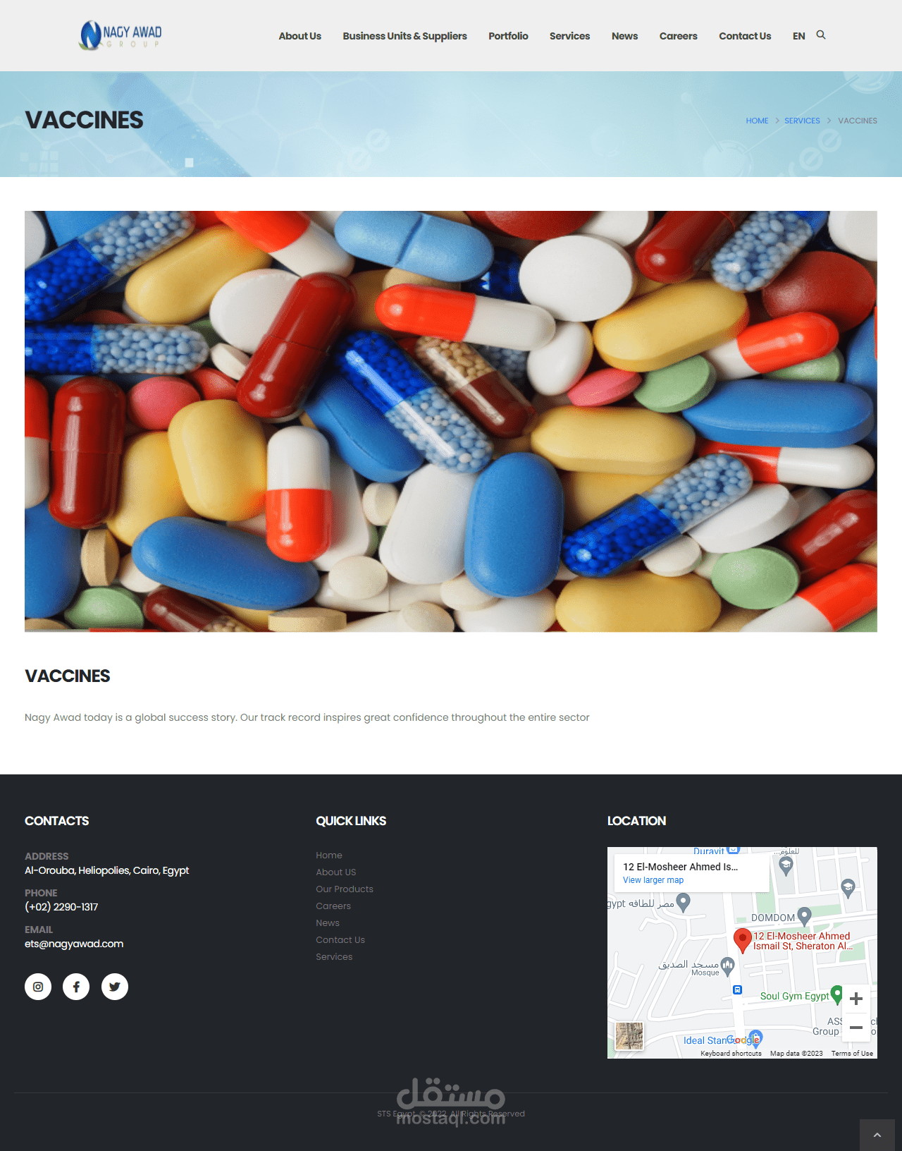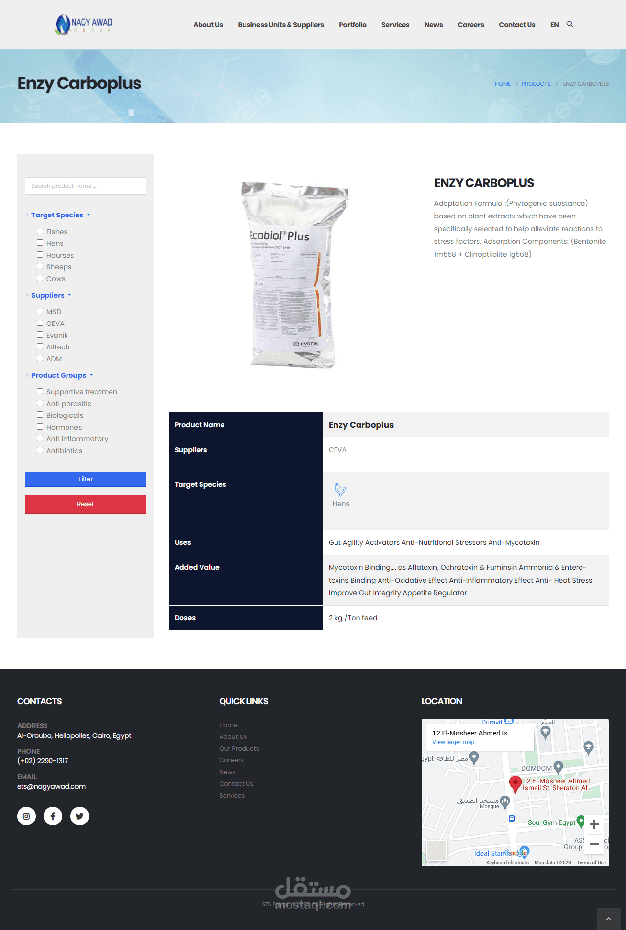 تصميم ويب سايت لشركة Nagy Awad Group -ETS و هى واحده من الشركات الرائدة فى مجال العلاج البيطرى