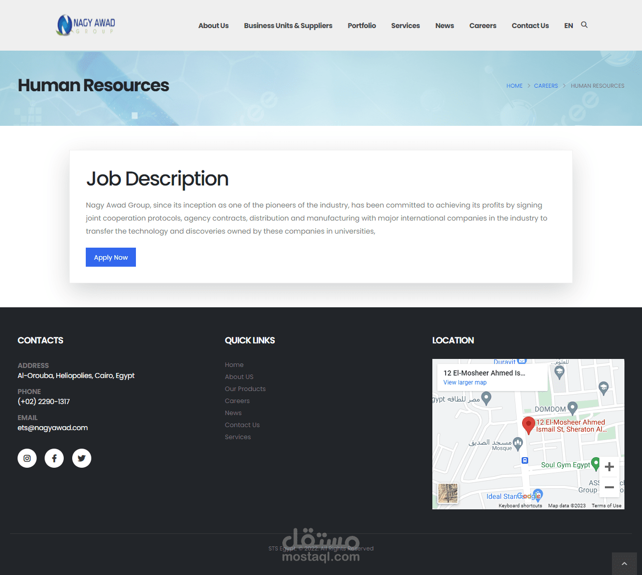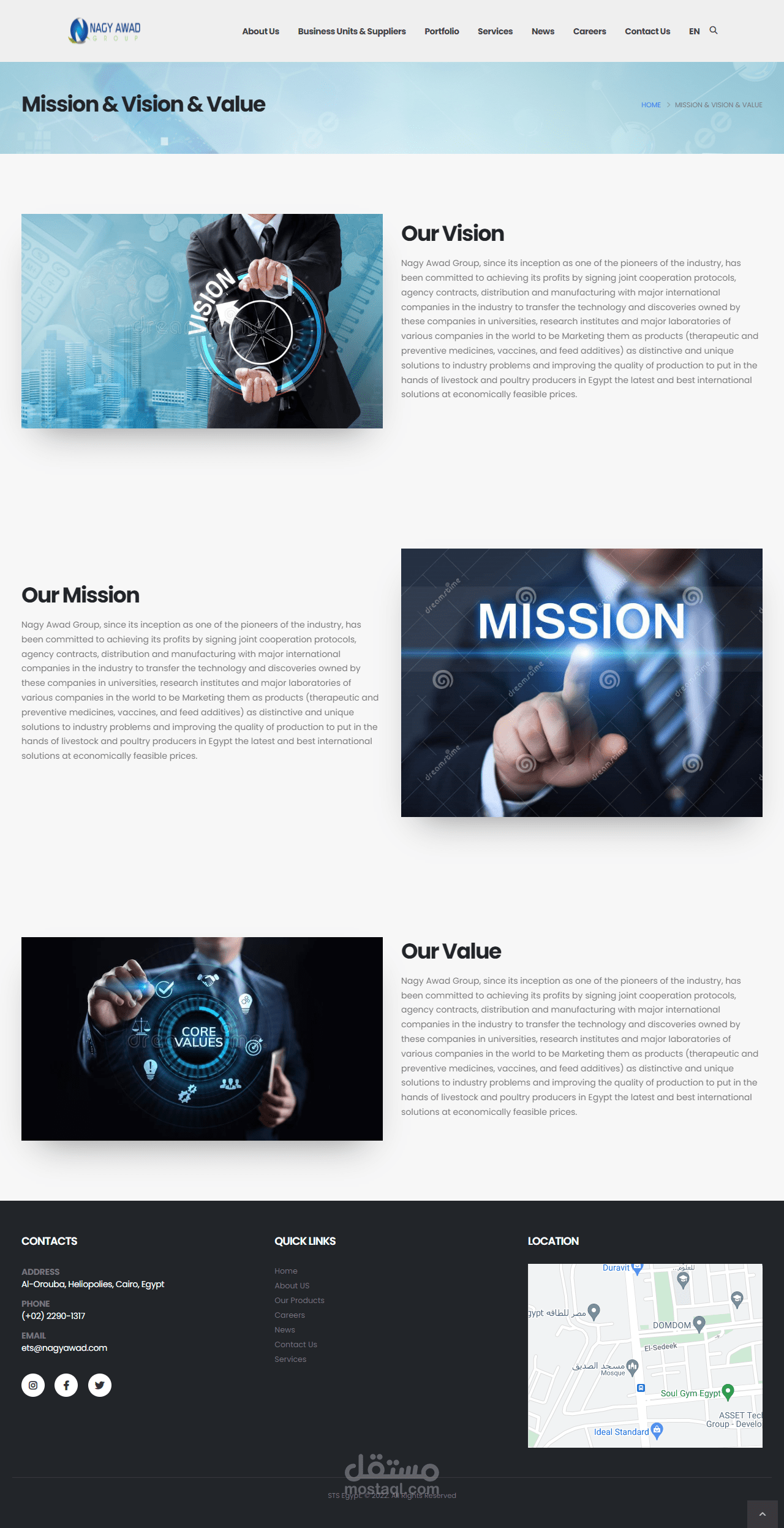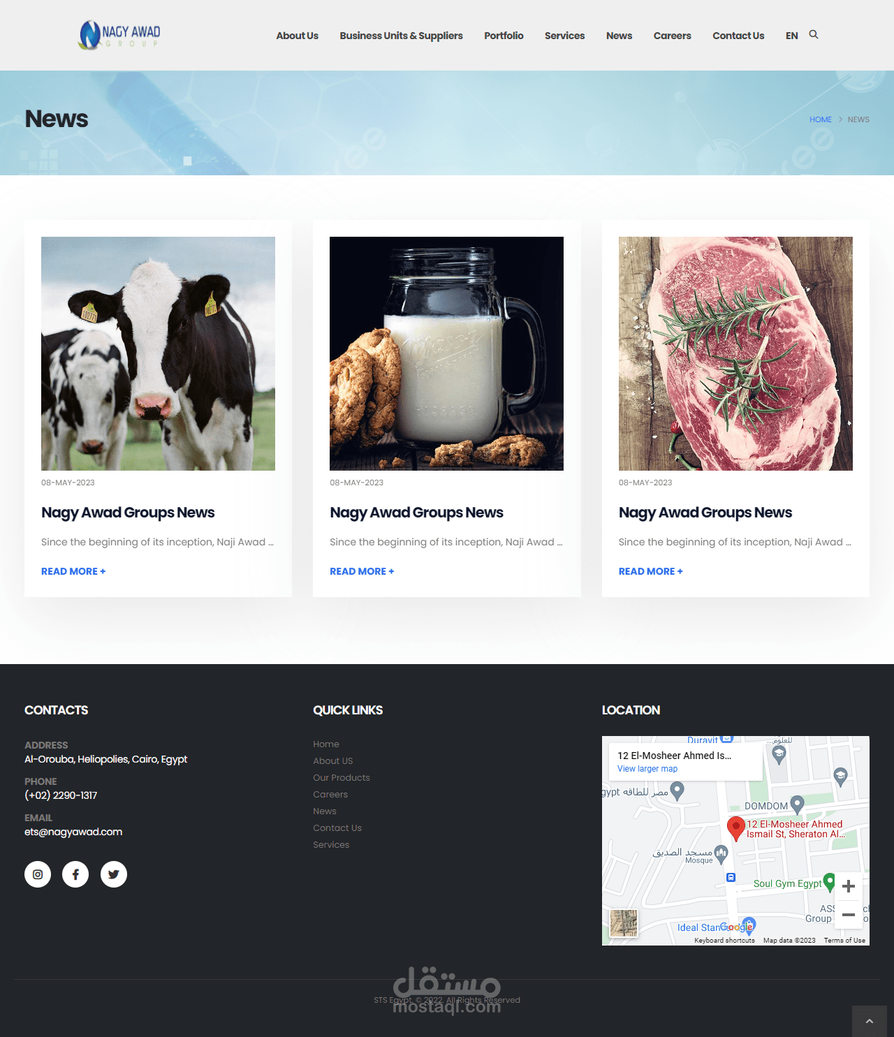 تصميم ويب سايت لشركة Nagy Awad Group -ETS و هى واحده من الشركات الرائدة فى مجال العلاج البيطرى