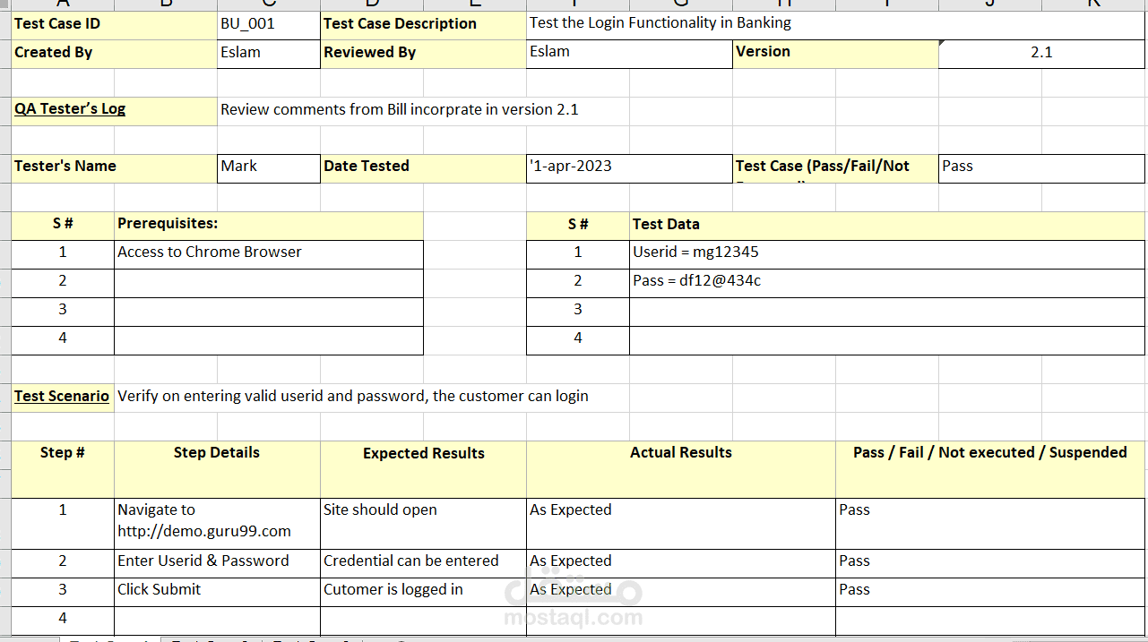 test case to login guru99