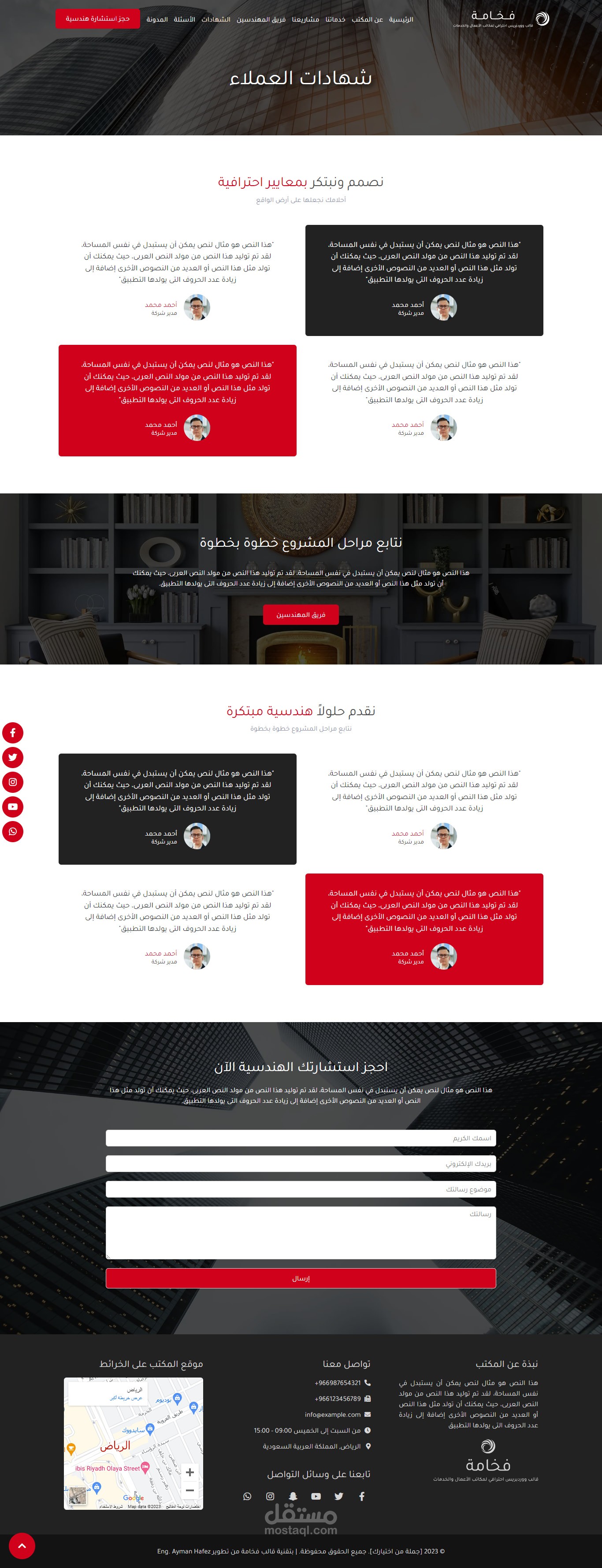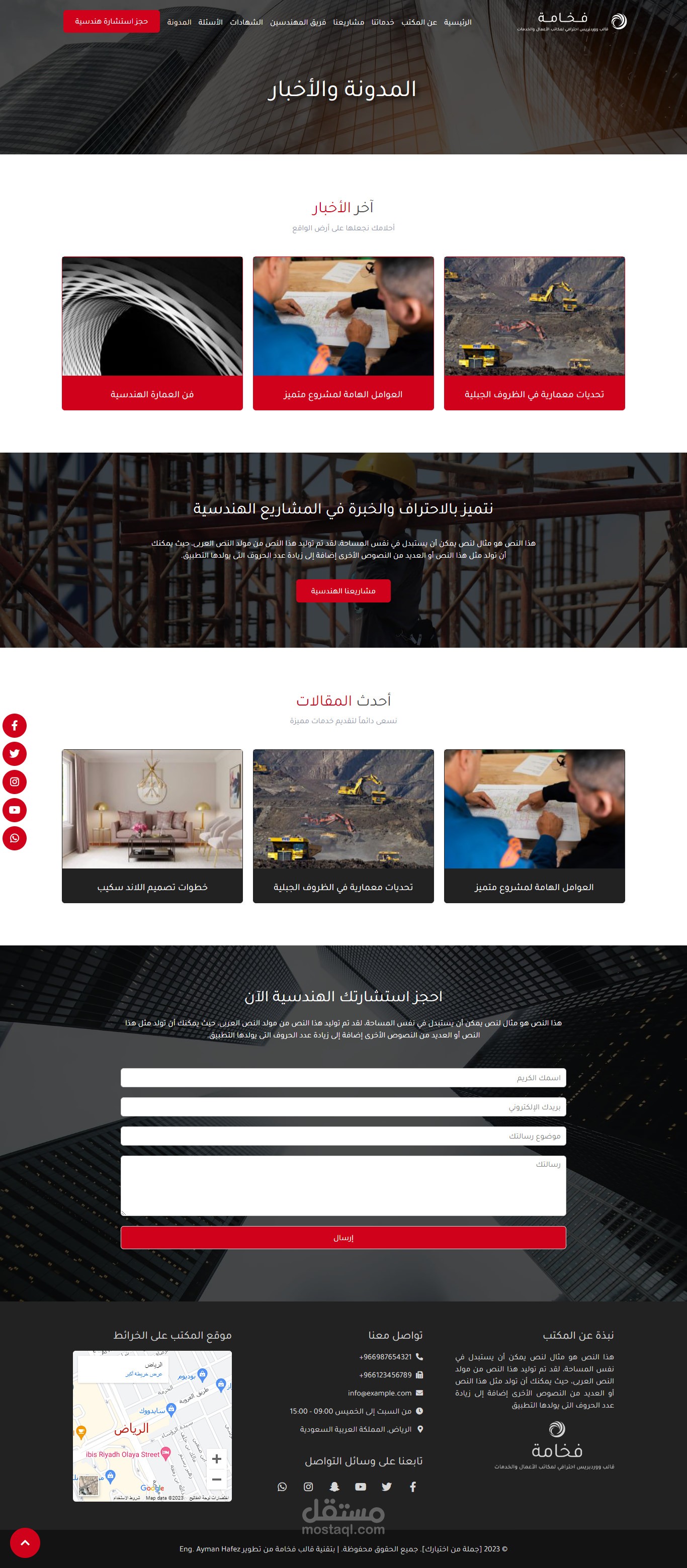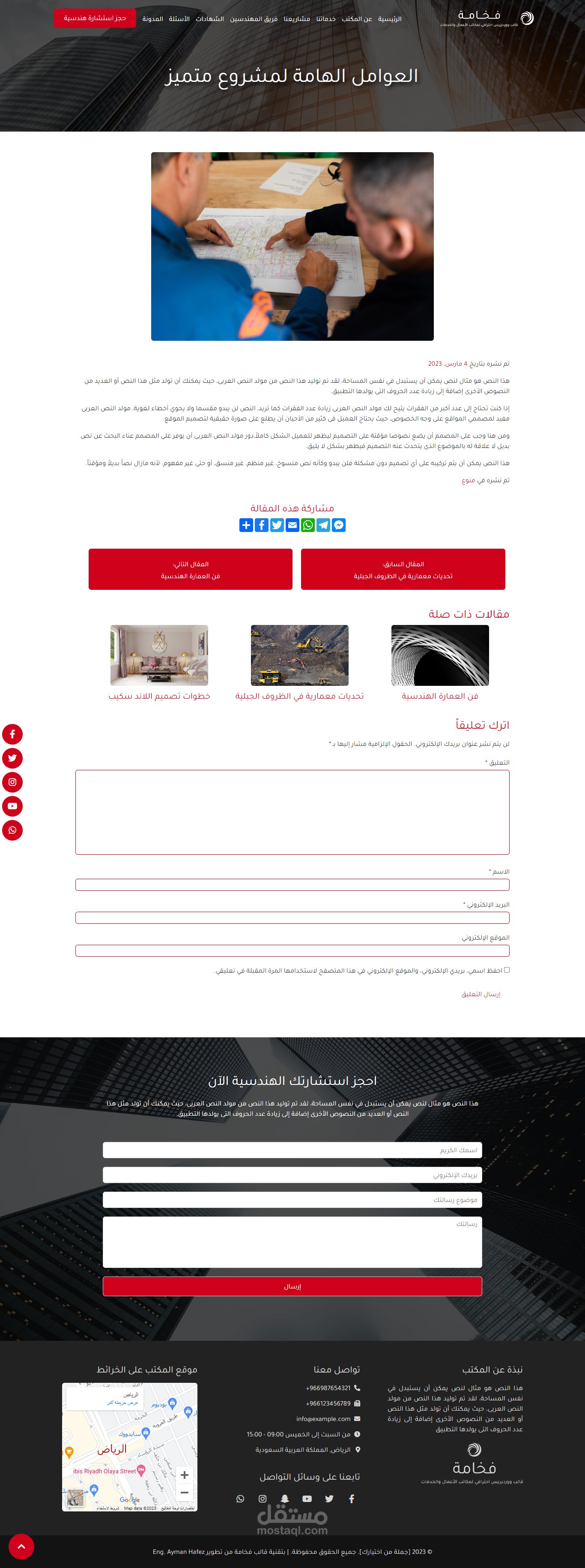 نموذج موقع إلكتروني لمكتب استشارات هندسية وهو أحد نماذج قالب فخامة المتوفر حالياً على متجر بيكاليكا..