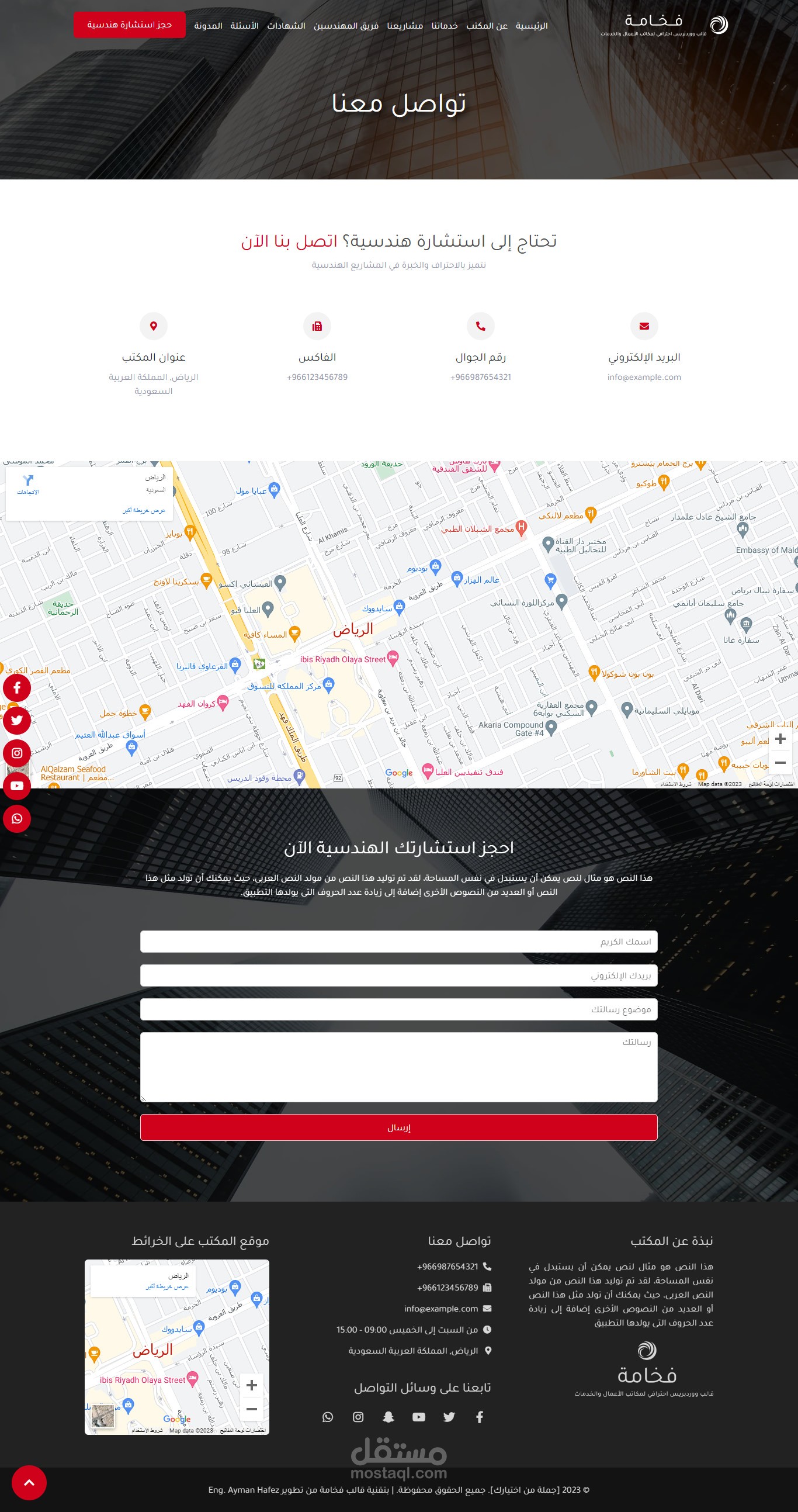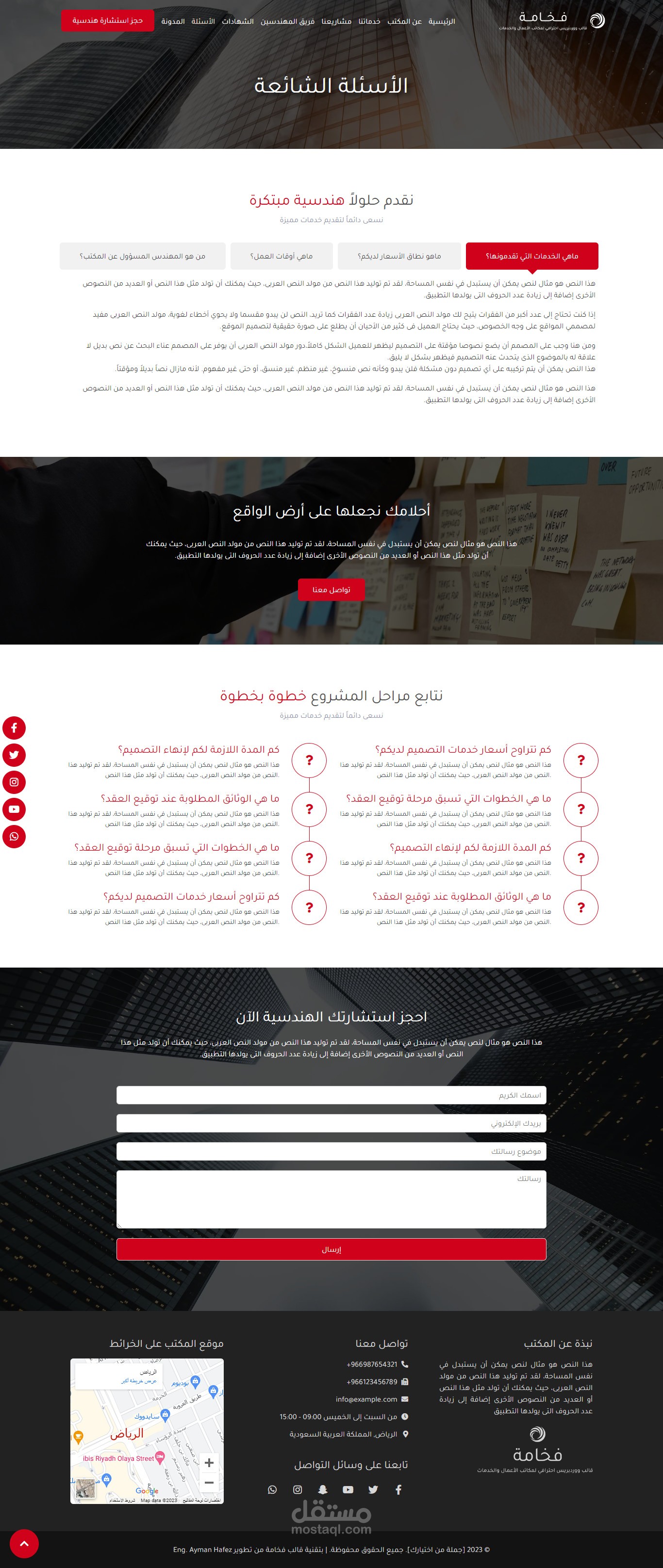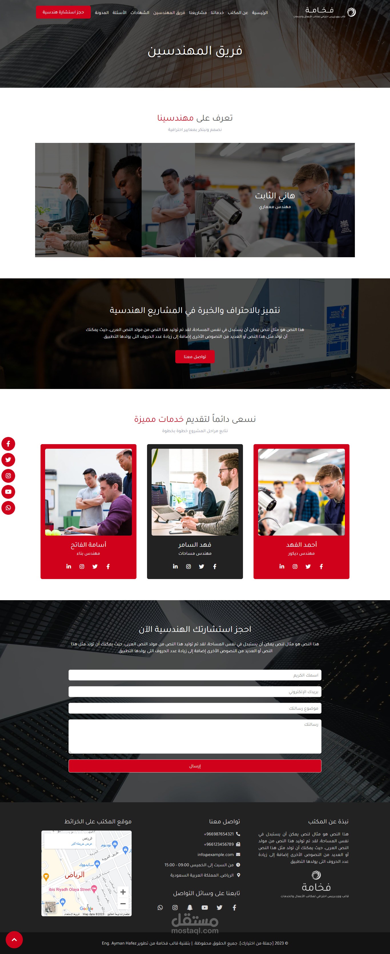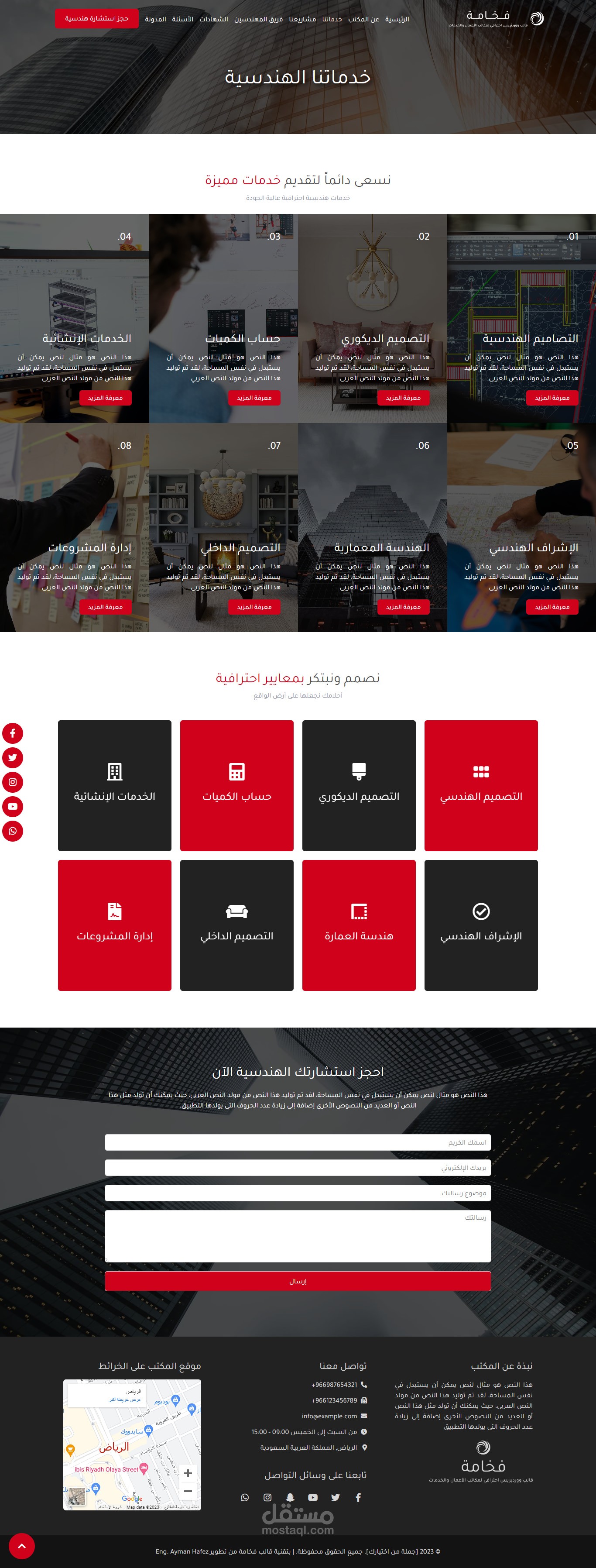 نموذج موقع إلكتروني لمكتب استشارات هندسية وهو أحد نماذج قالب فخامة المتوفر حالياً على متجر بيكاليكا..