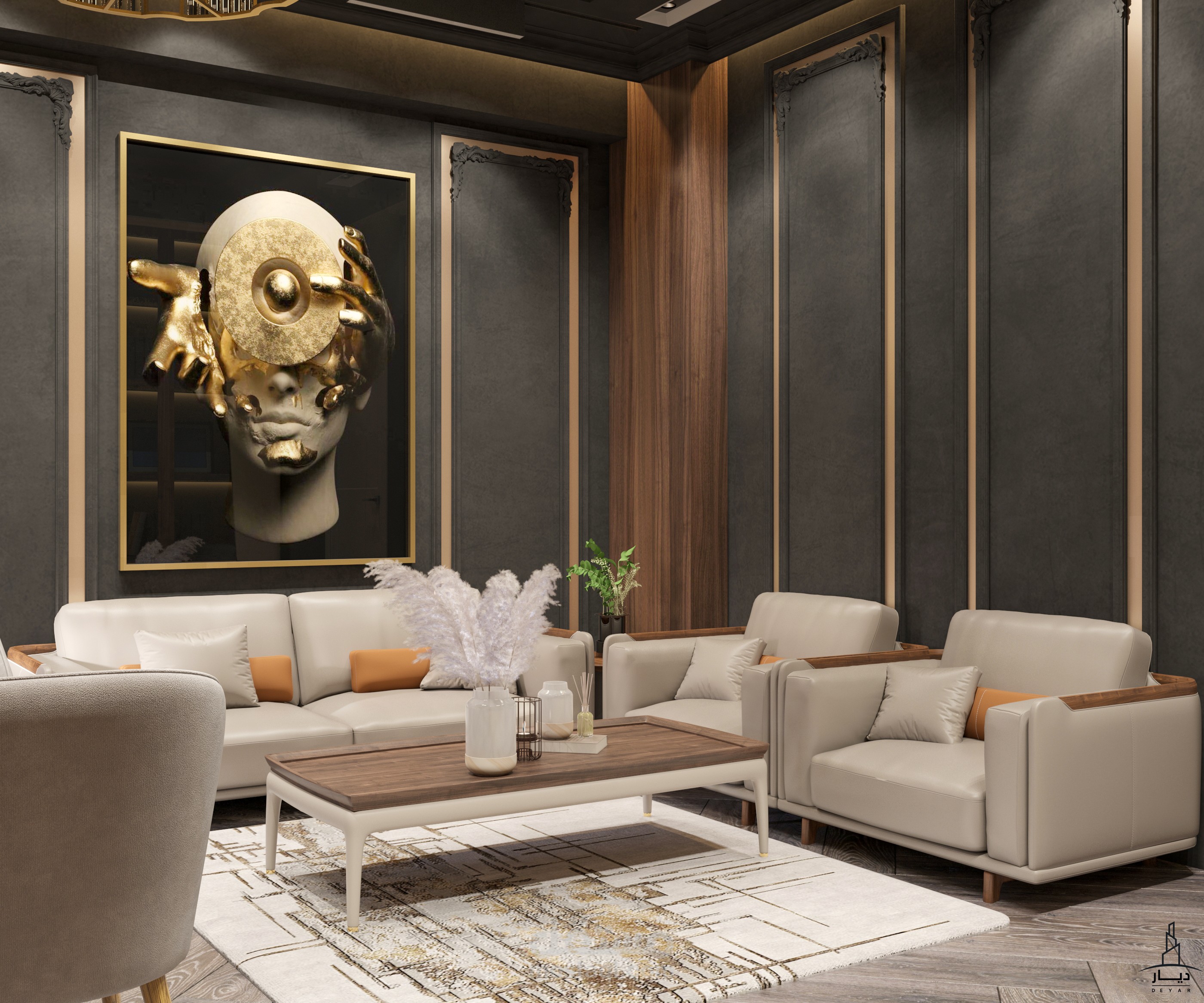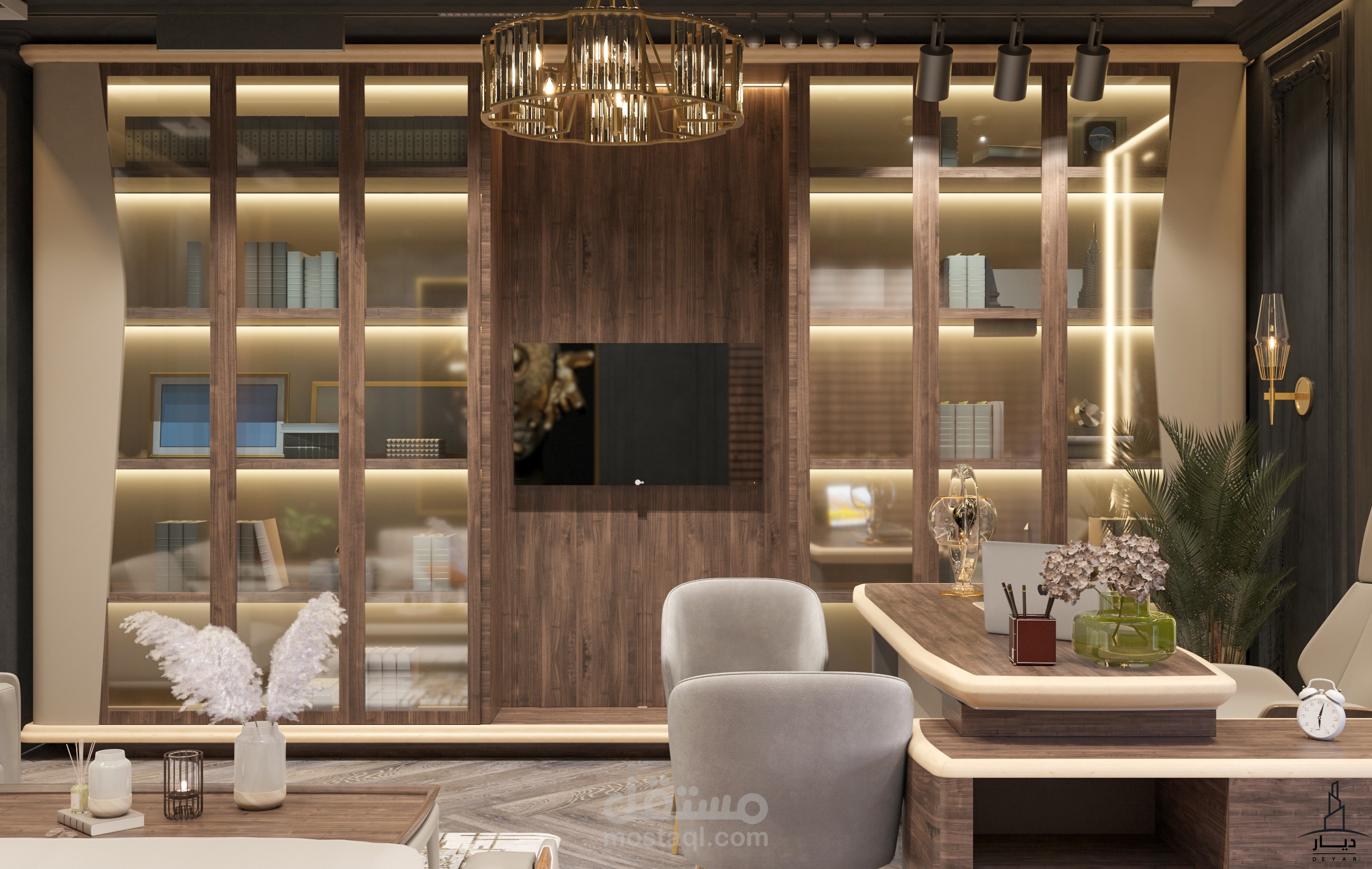 تصميم غرفة مكتب لفيلا على الطراز الكلاسيك الحديث