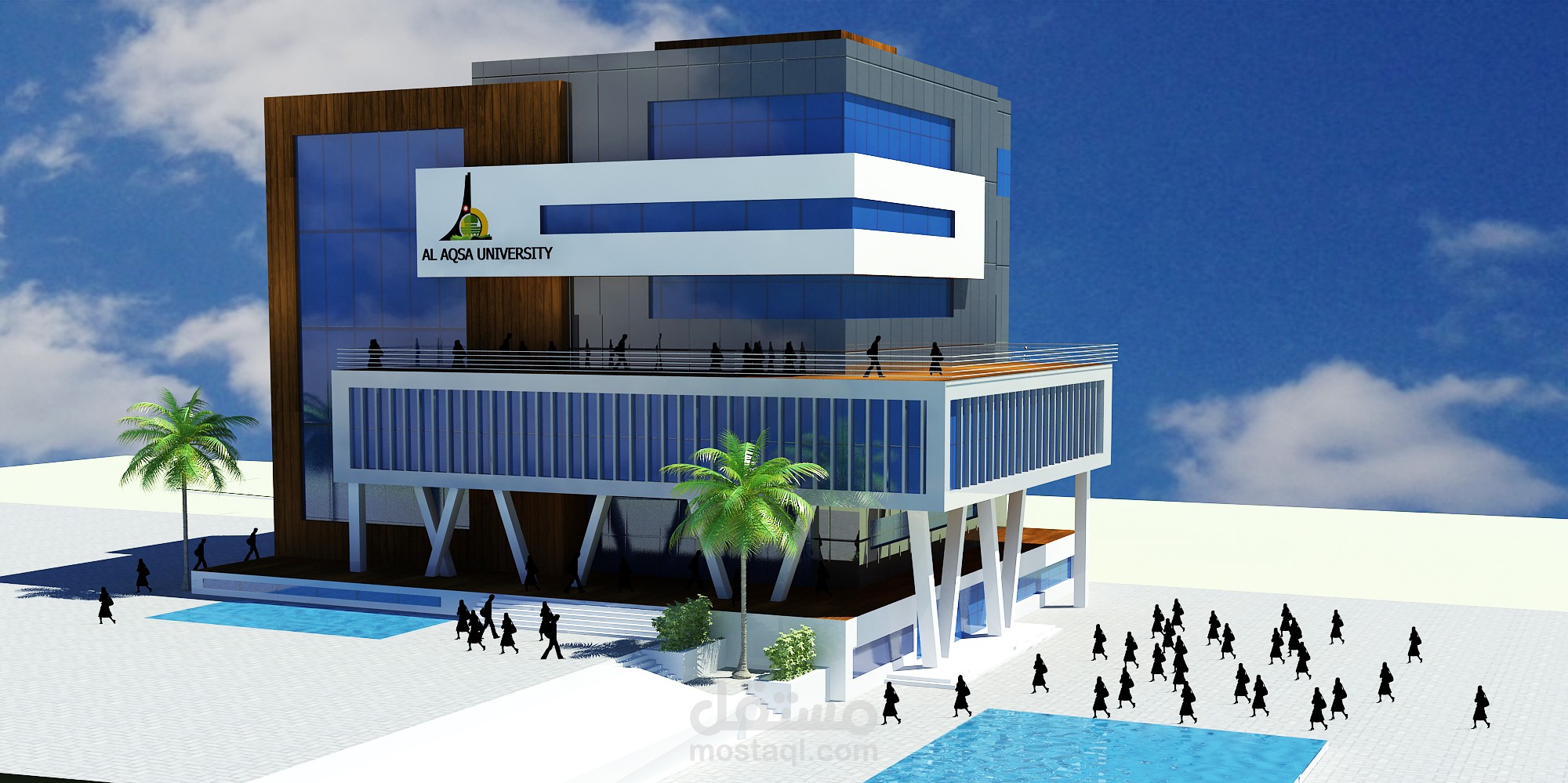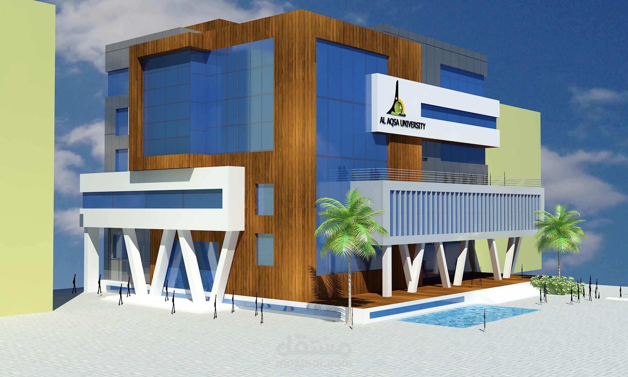 Building lectures Design Competition of Al Aqsa University of Gaza and the land area 1 dunum and the building is multi-use. Building consists of basement and ground floor and four floors. Consists floor basement of a prayer room, a gym, and cafeteria for female students and there are other of them to male students while the second floor was an administrative and contains admission and registration and first and second-floor science laboratories and the third and a quarter lecture halls.
