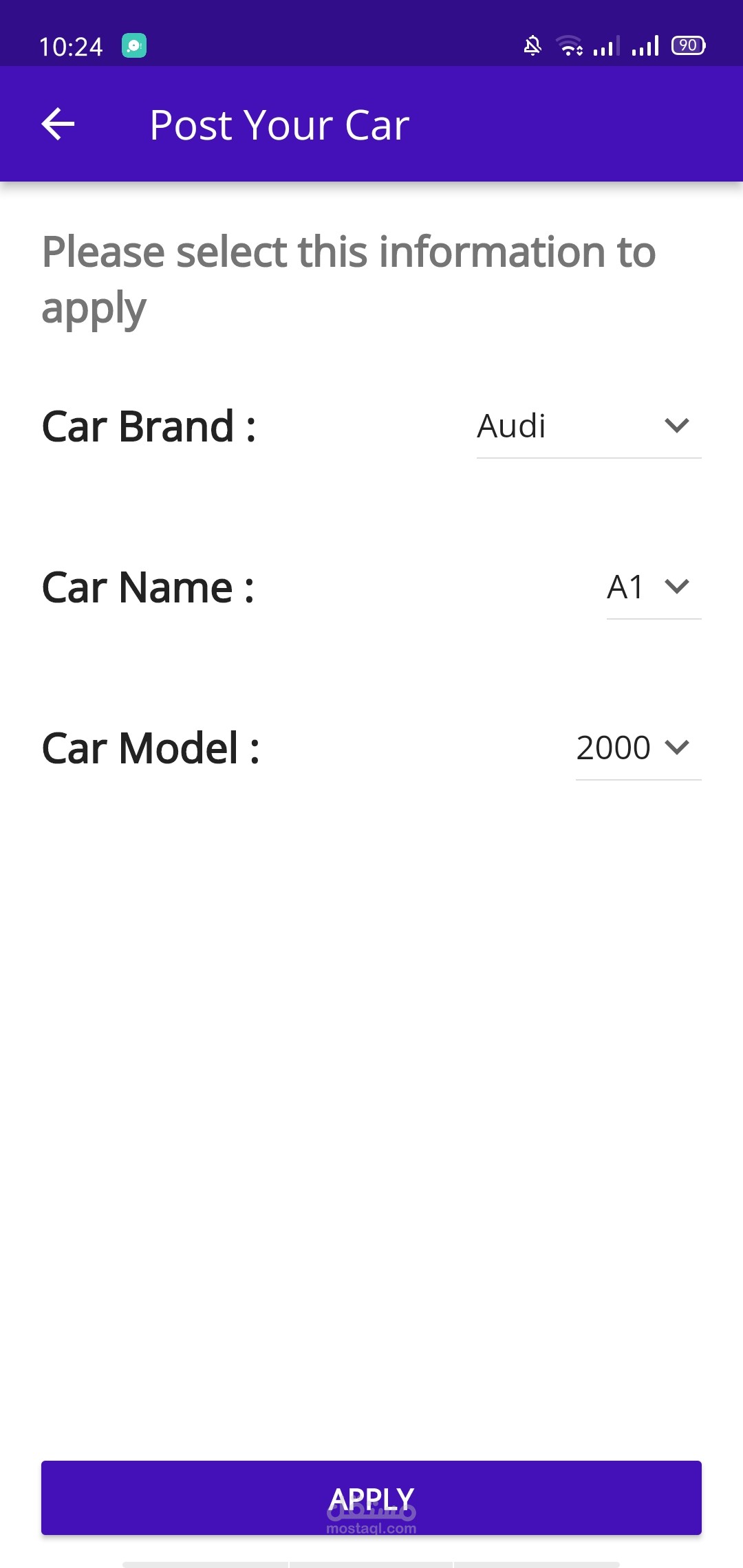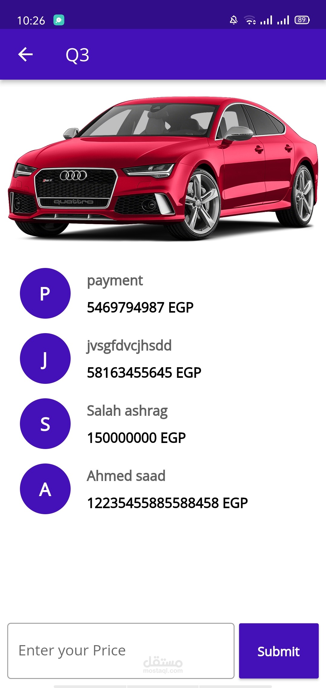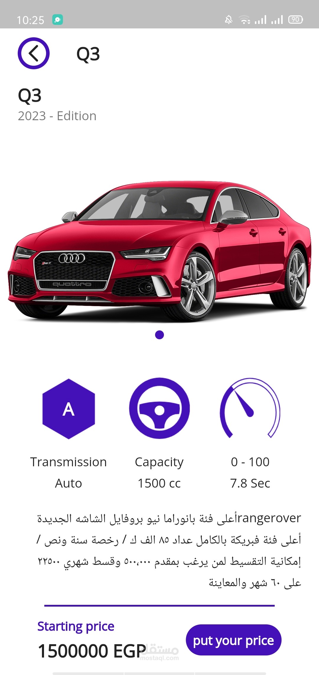 Cars Auctions App -> هو تطبيق مخصص لعمل مزادات علي السيارات بواسطه شركه او مركز فحص يكون هو الوسيط بين صاحب السياره والشخص الذي يقع عليه المزيد .