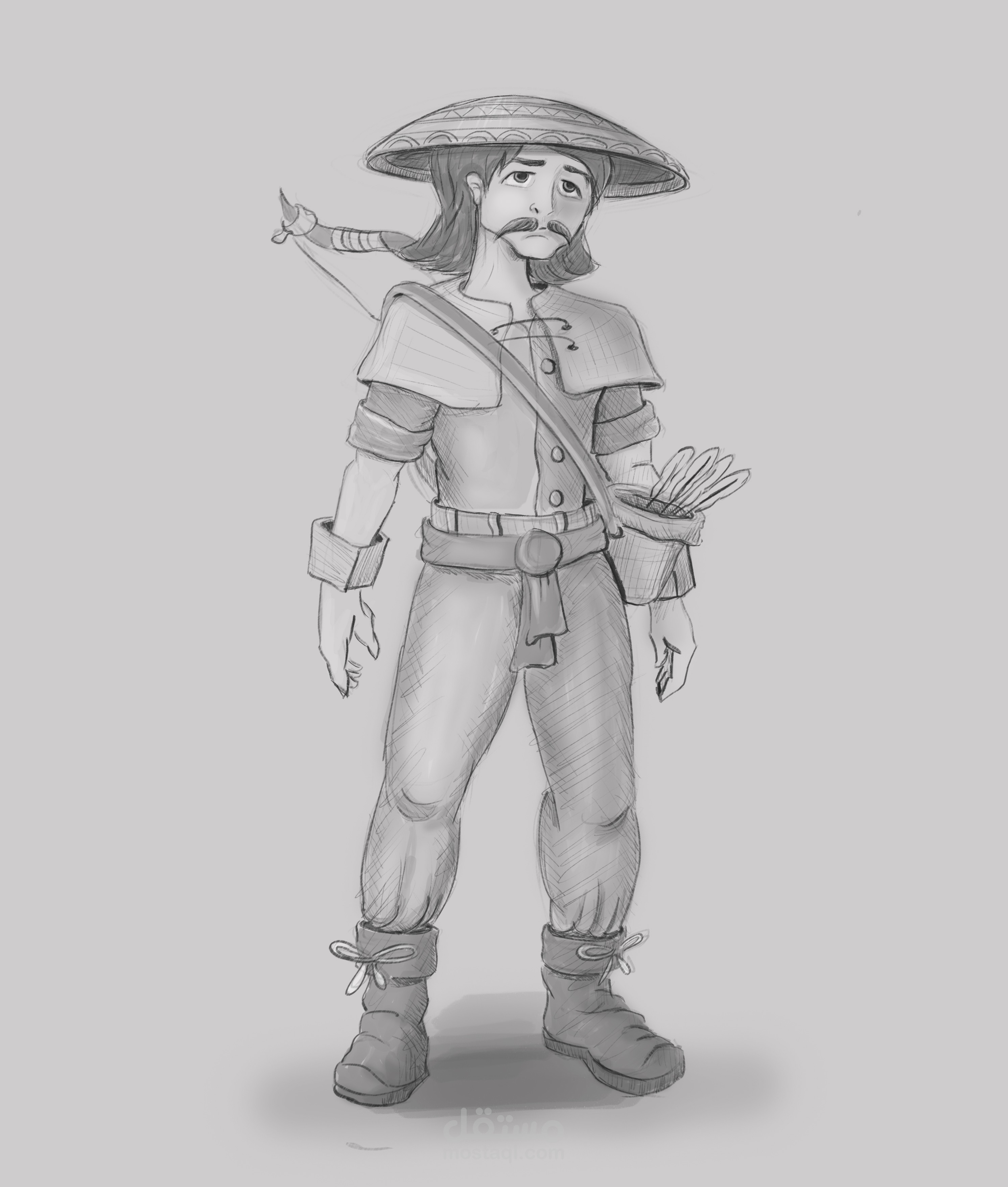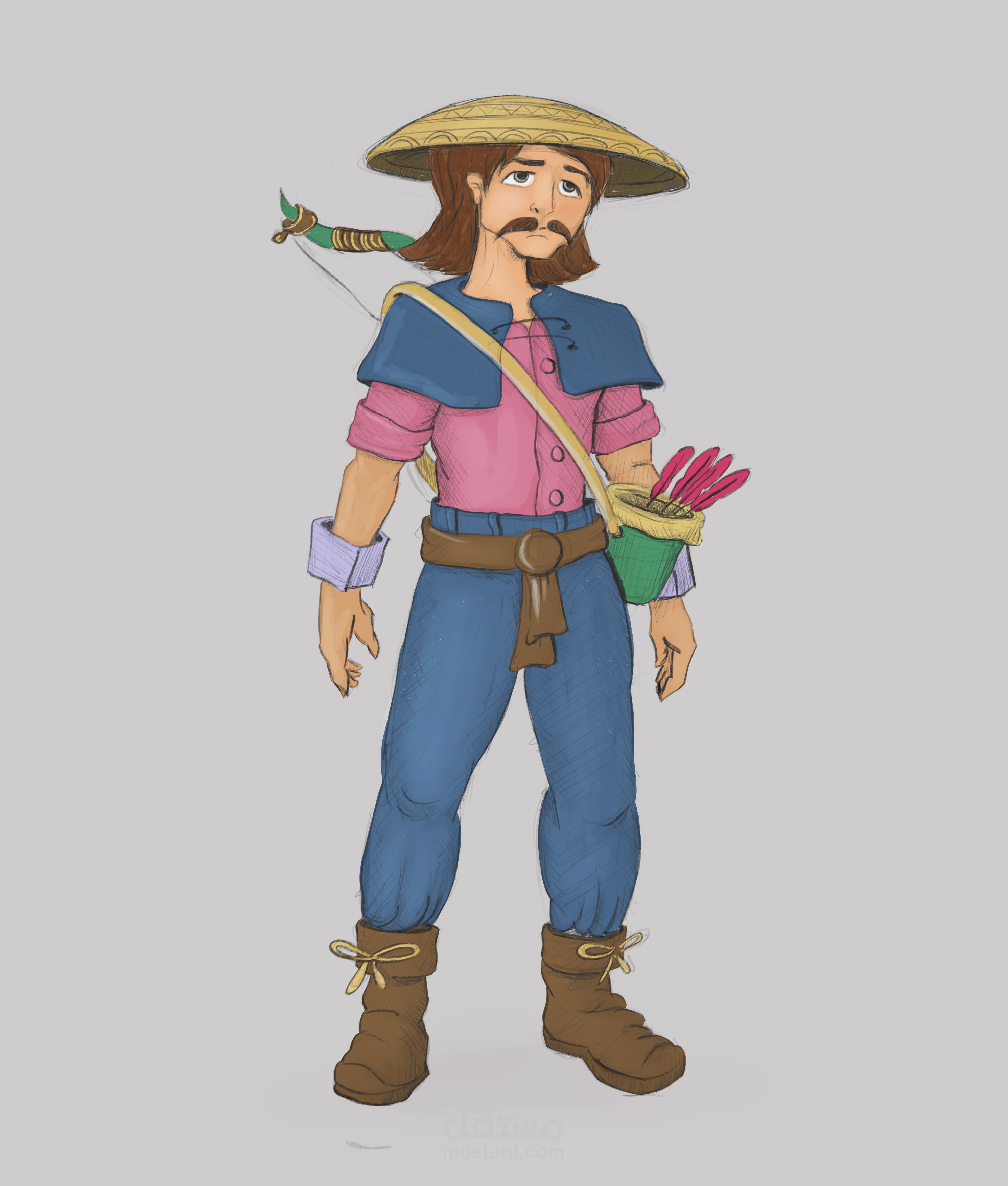 The Hunter character was designed for the children`s story from the historical book kalela and Demna.