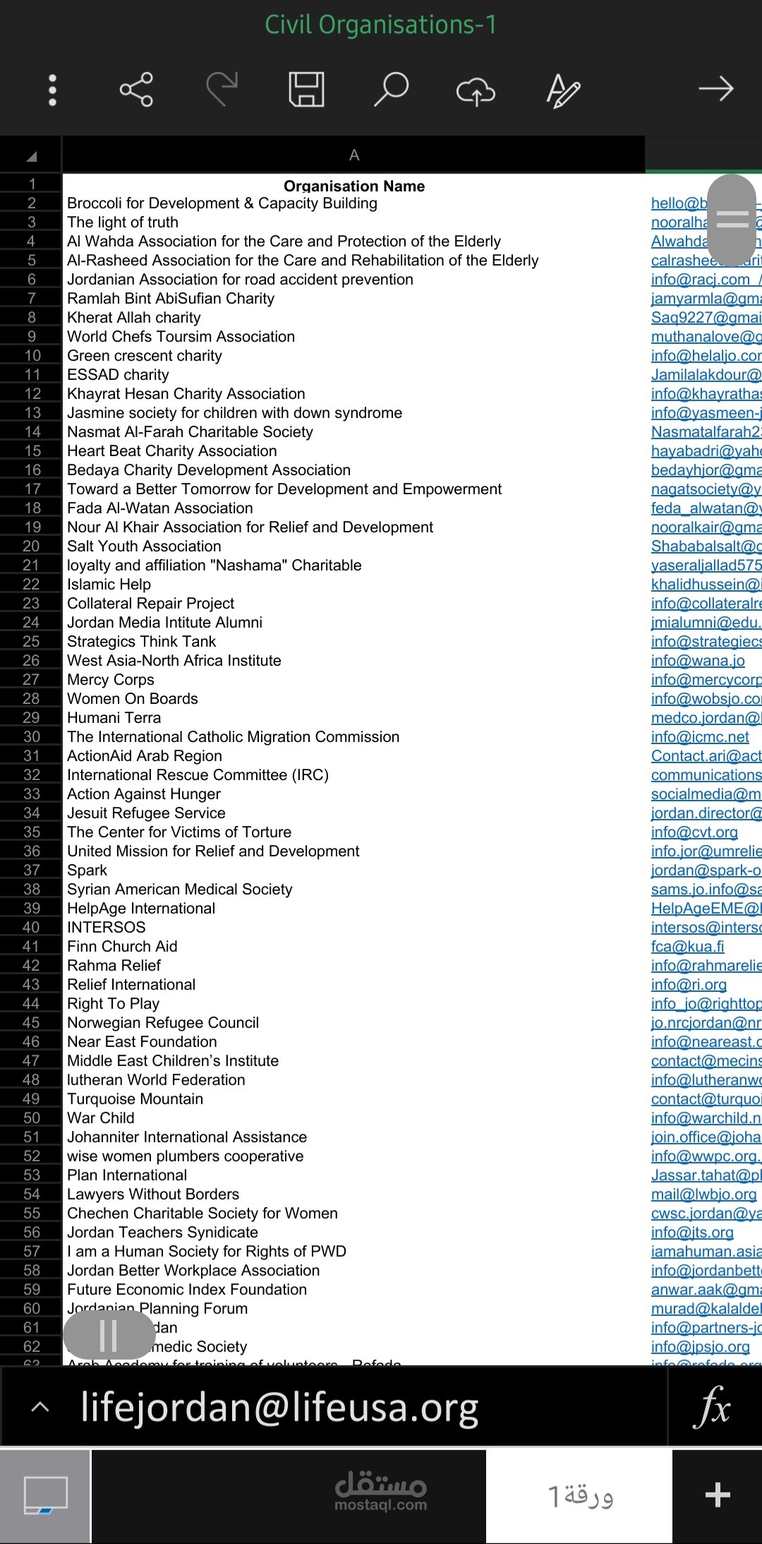 Excel sheet with company name and its emails in jorden