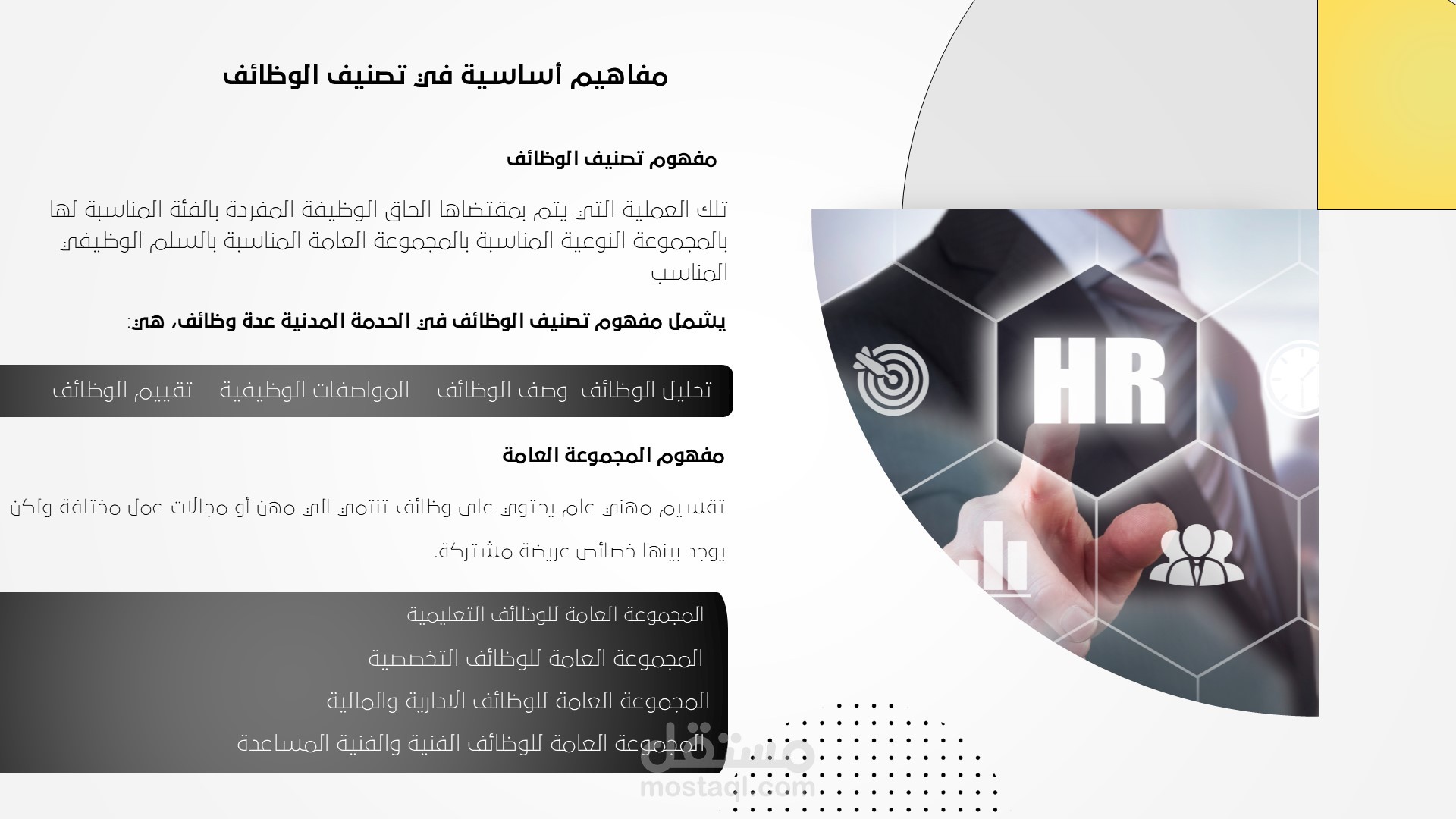 النتيجة: العرض يقدم محتوى واضح وتثقيفي حول إدارة الموارد البشرية، مما يجعله مثاليًا للتدريب، ورش العمل، والدورات الأكاديمية.