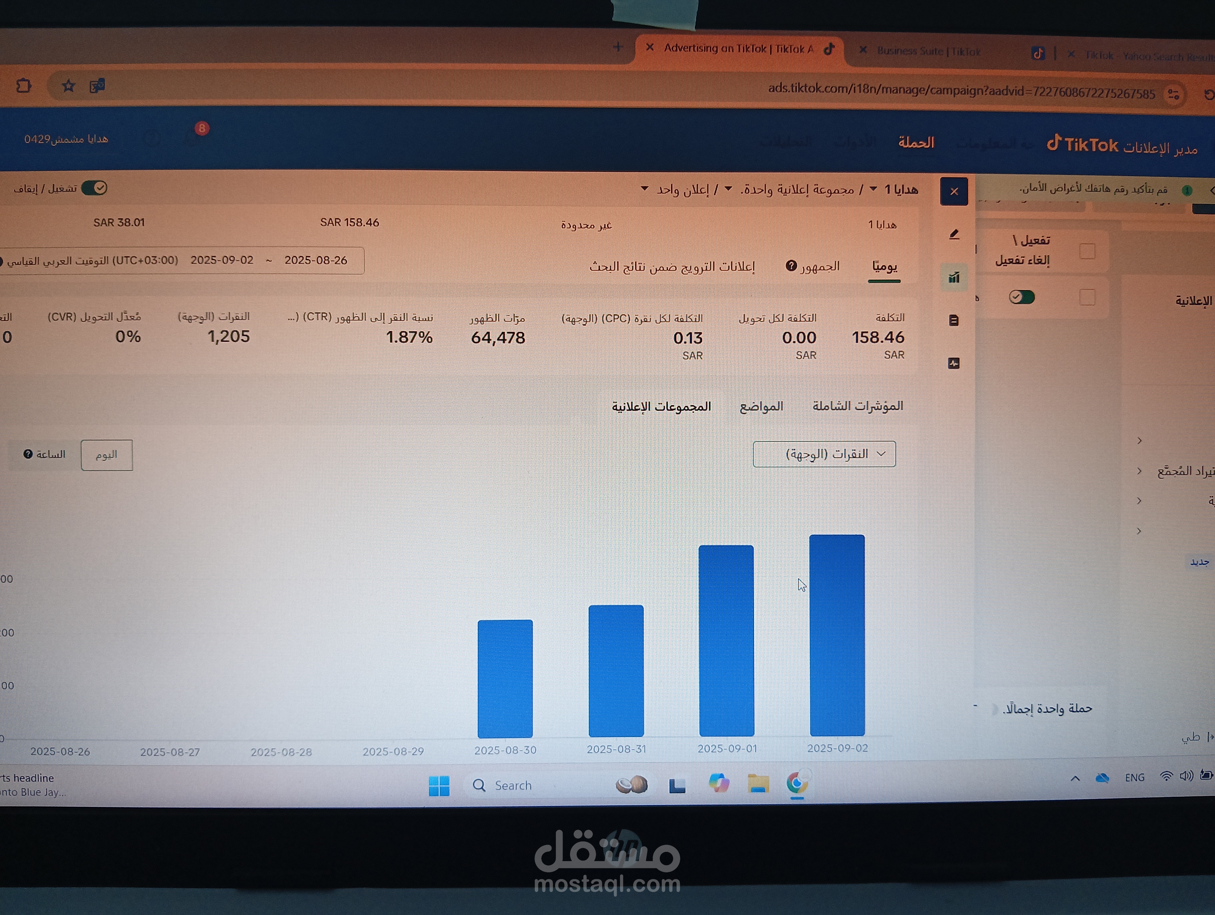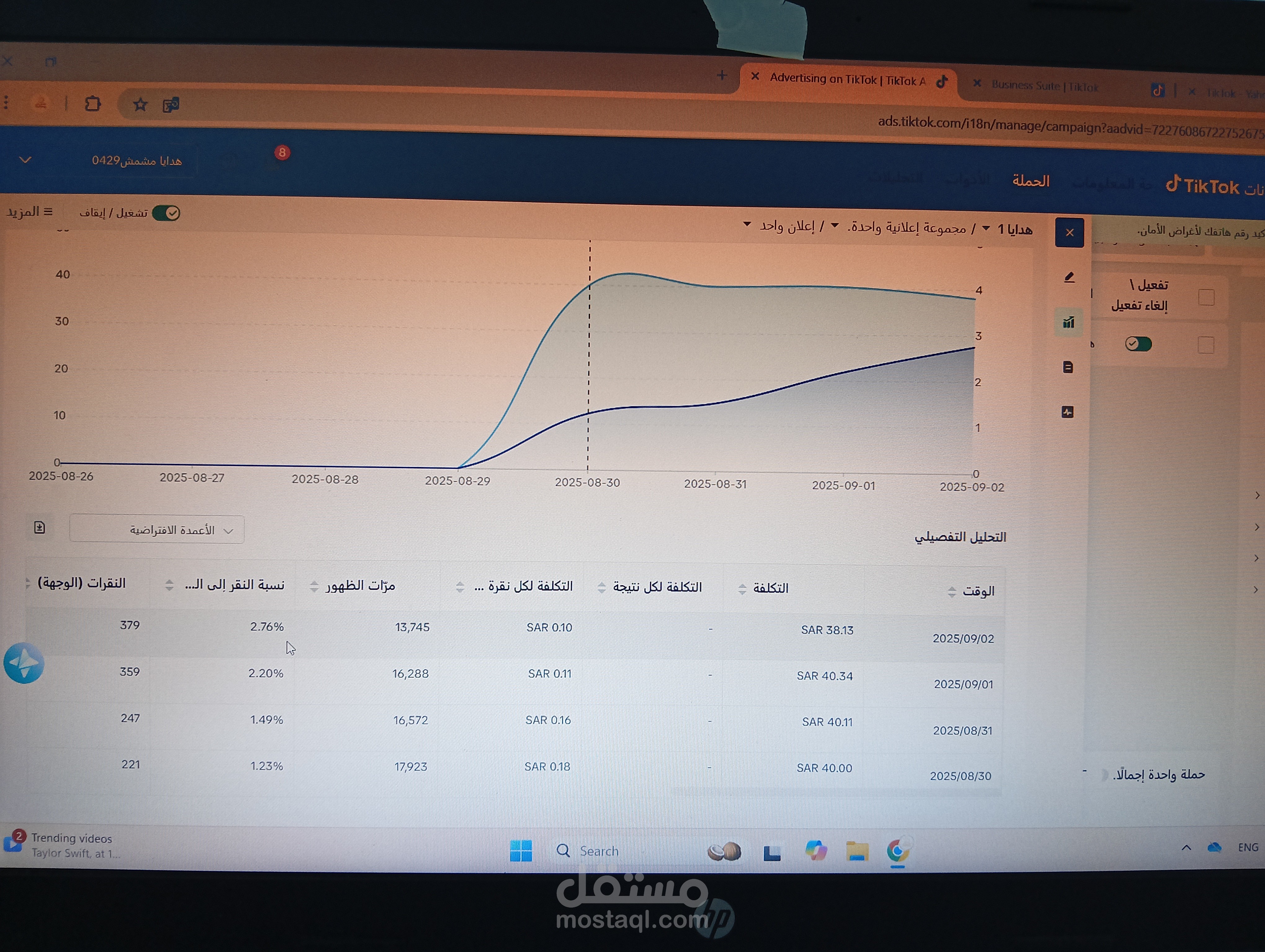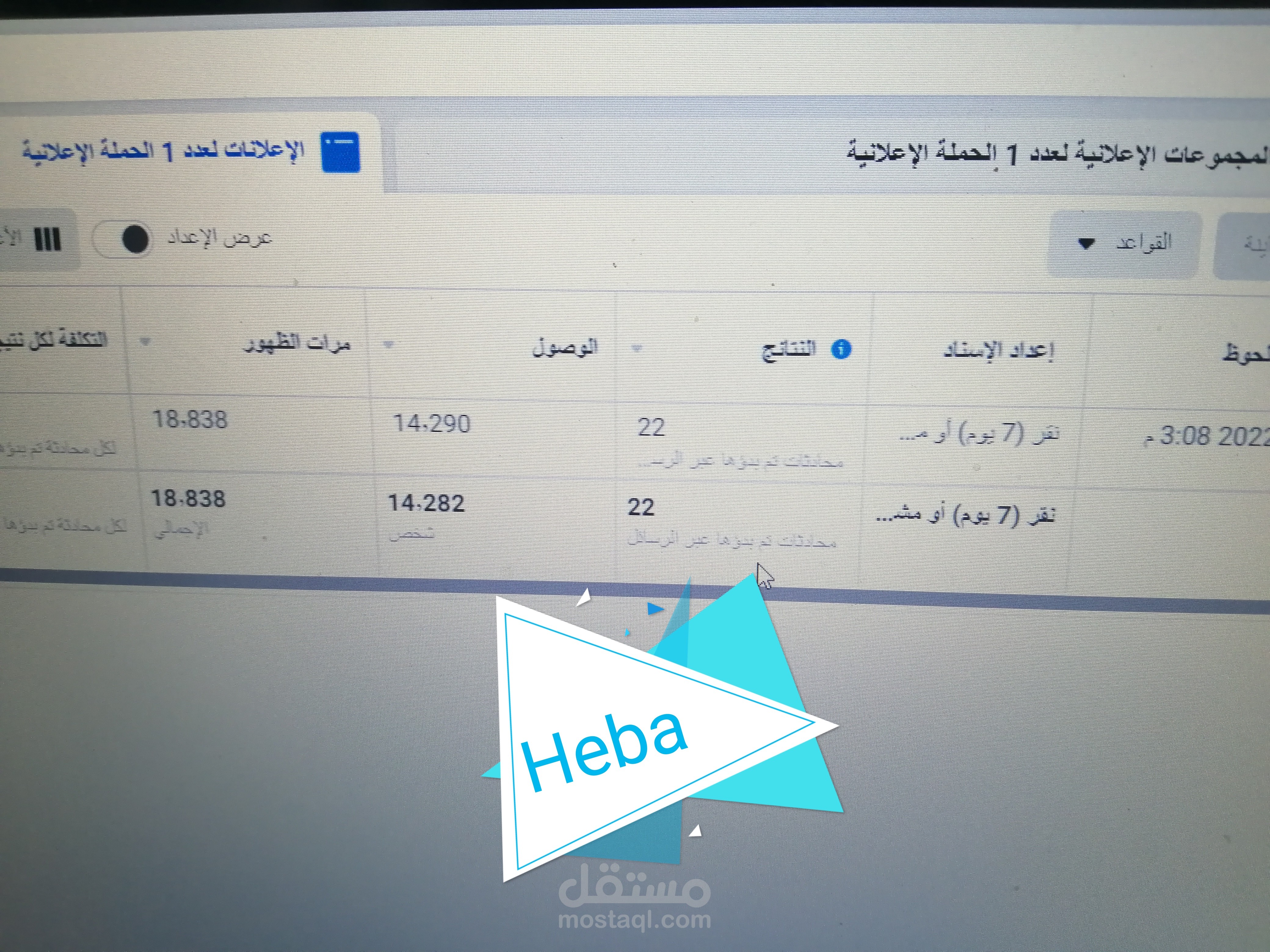 نتائج لبعض الحملات الإعلانية التي قمت بإنشاءها ومتابعة نتاءجها لبعض الشركات السعودية والقطرية وموقع زاد الإلكتروني