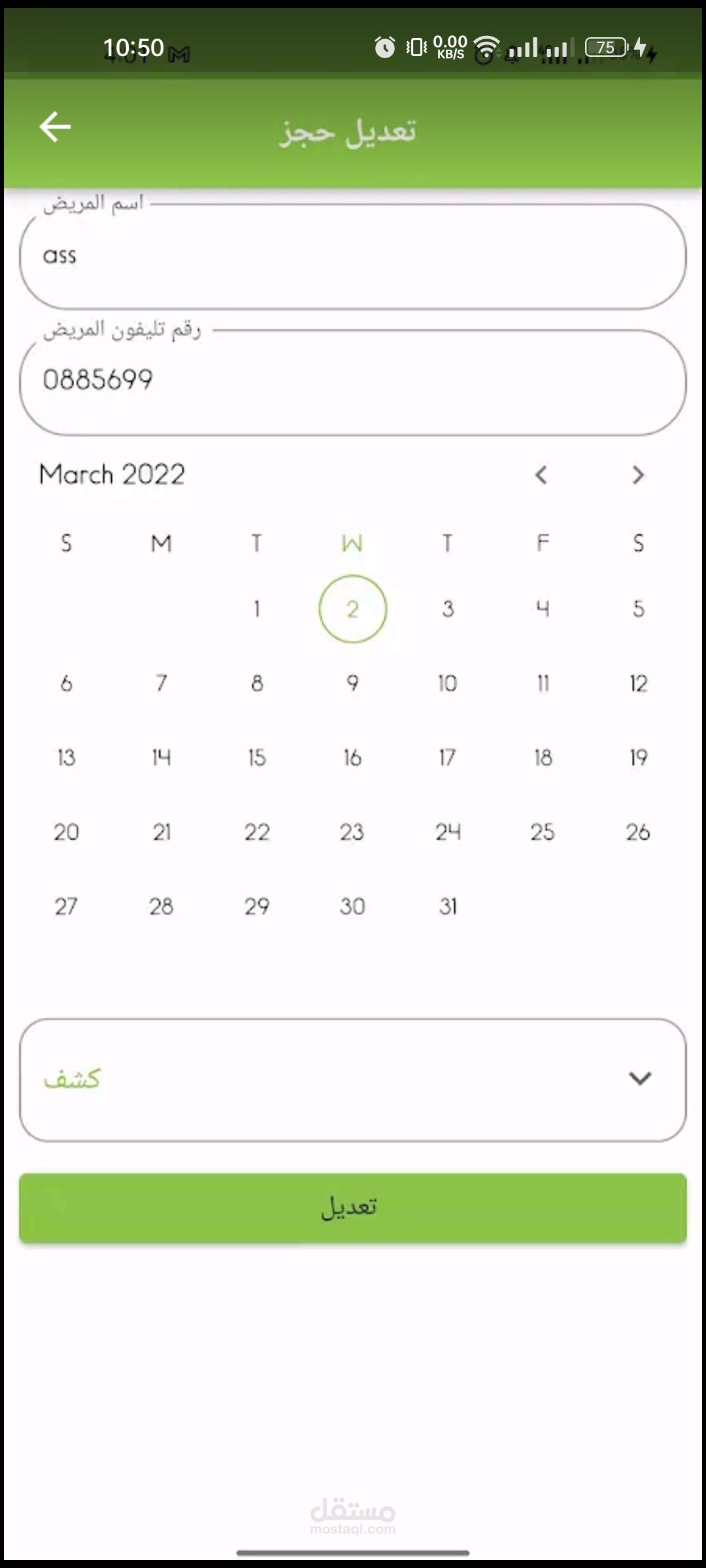 هذا التطبيق هو تطبيق حجز لعيادة دكتور باستخدام local database