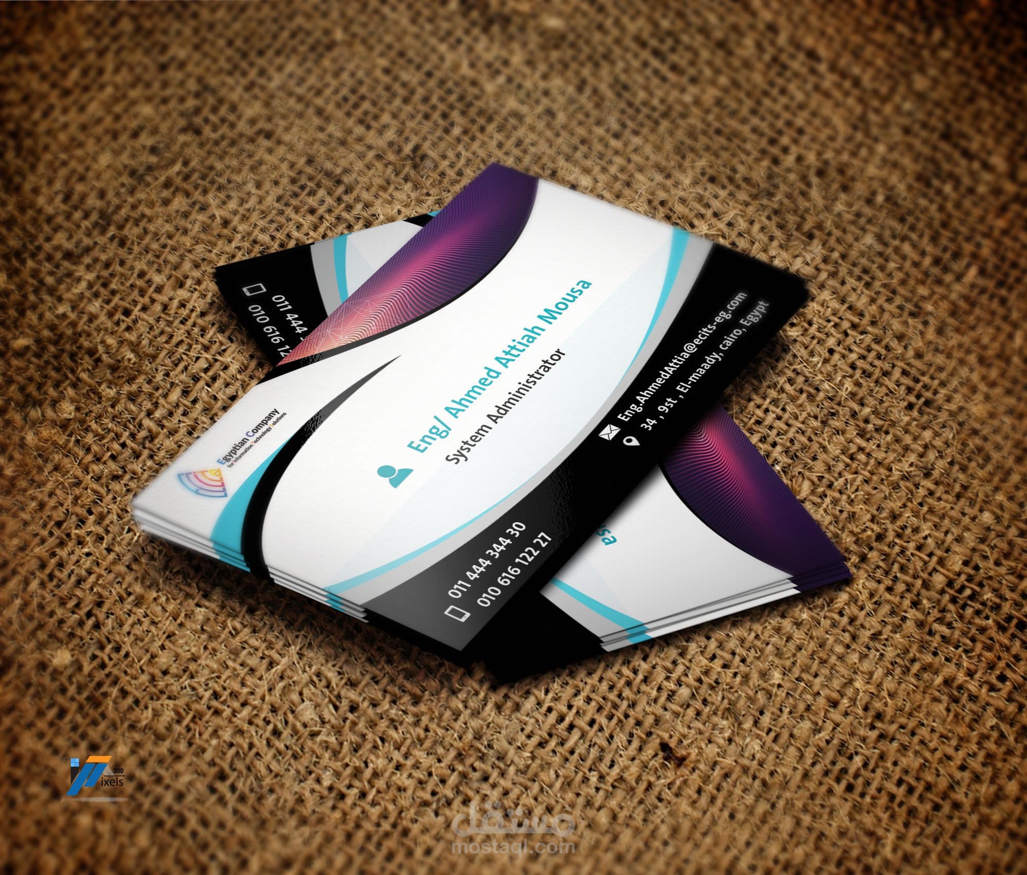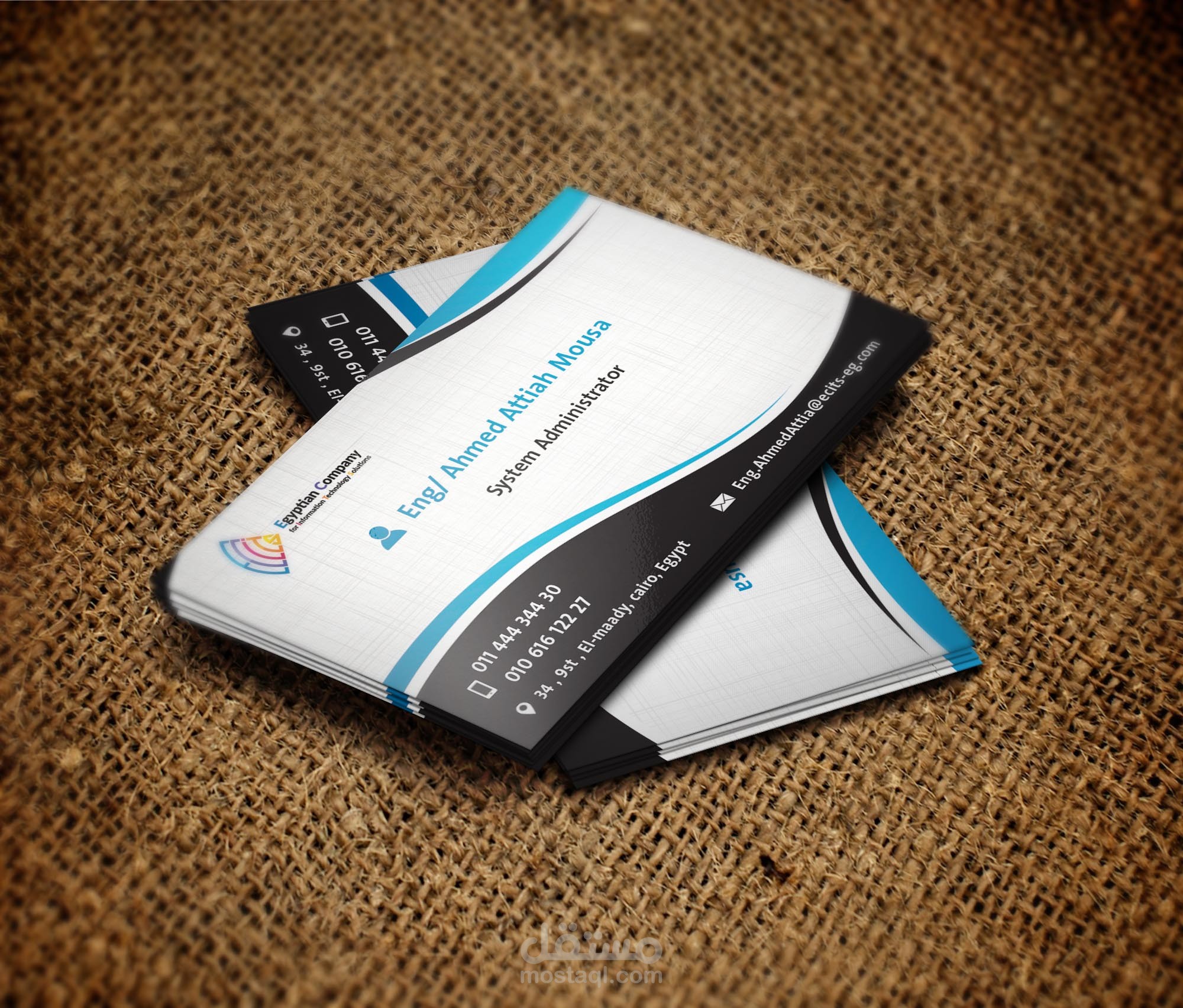 كارت شخصى للمدير التنفيذى لشركة Eties لتكنولوجيا المعلومات تم تصميمه من خلال برامج الفوتوشوب , و الاليستريتور