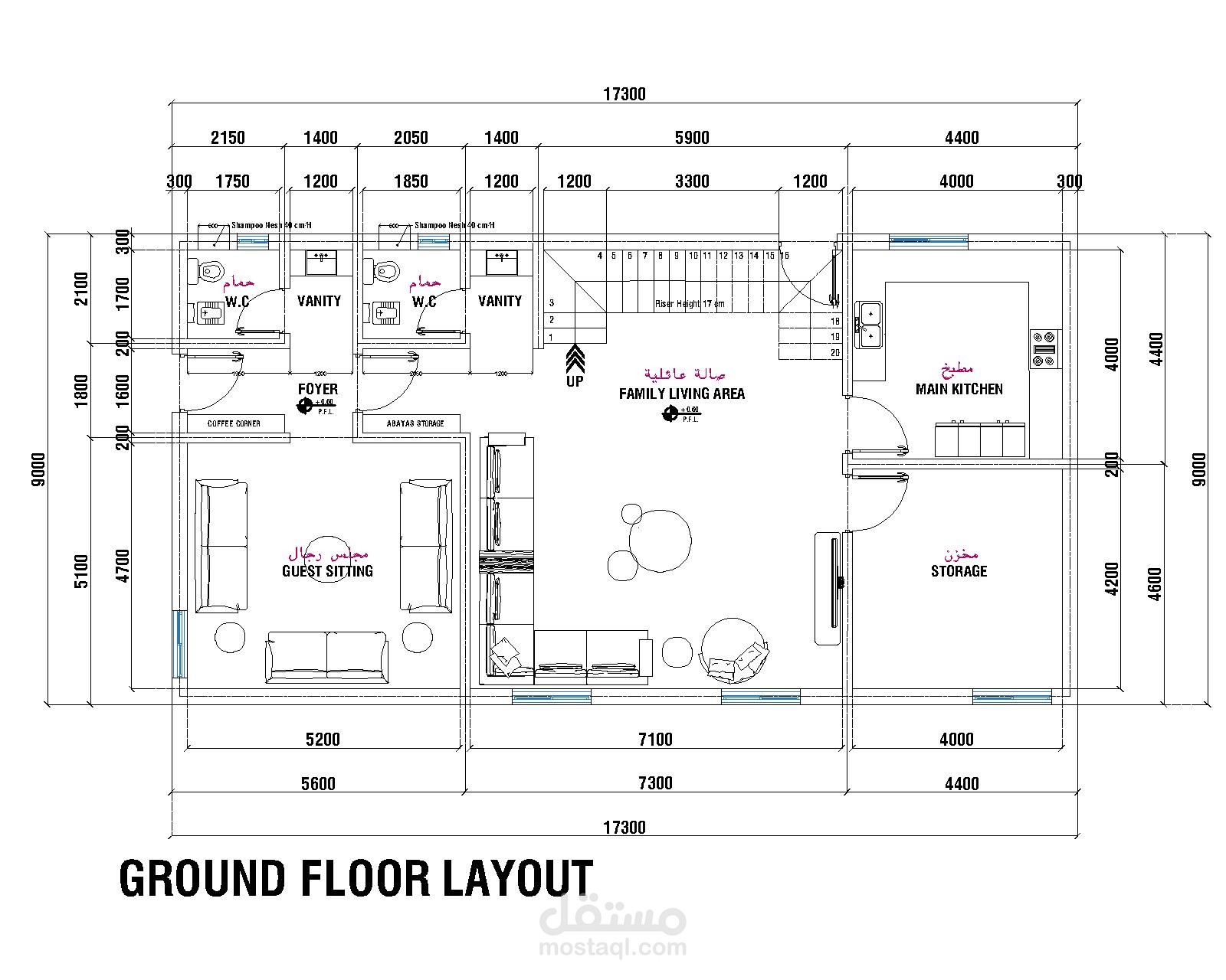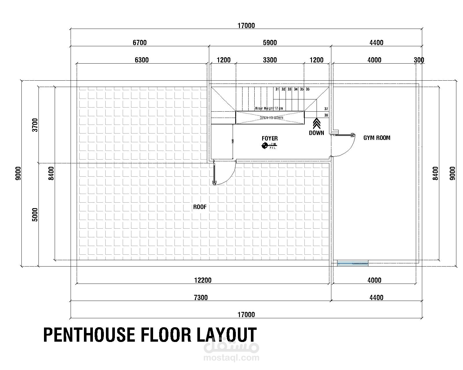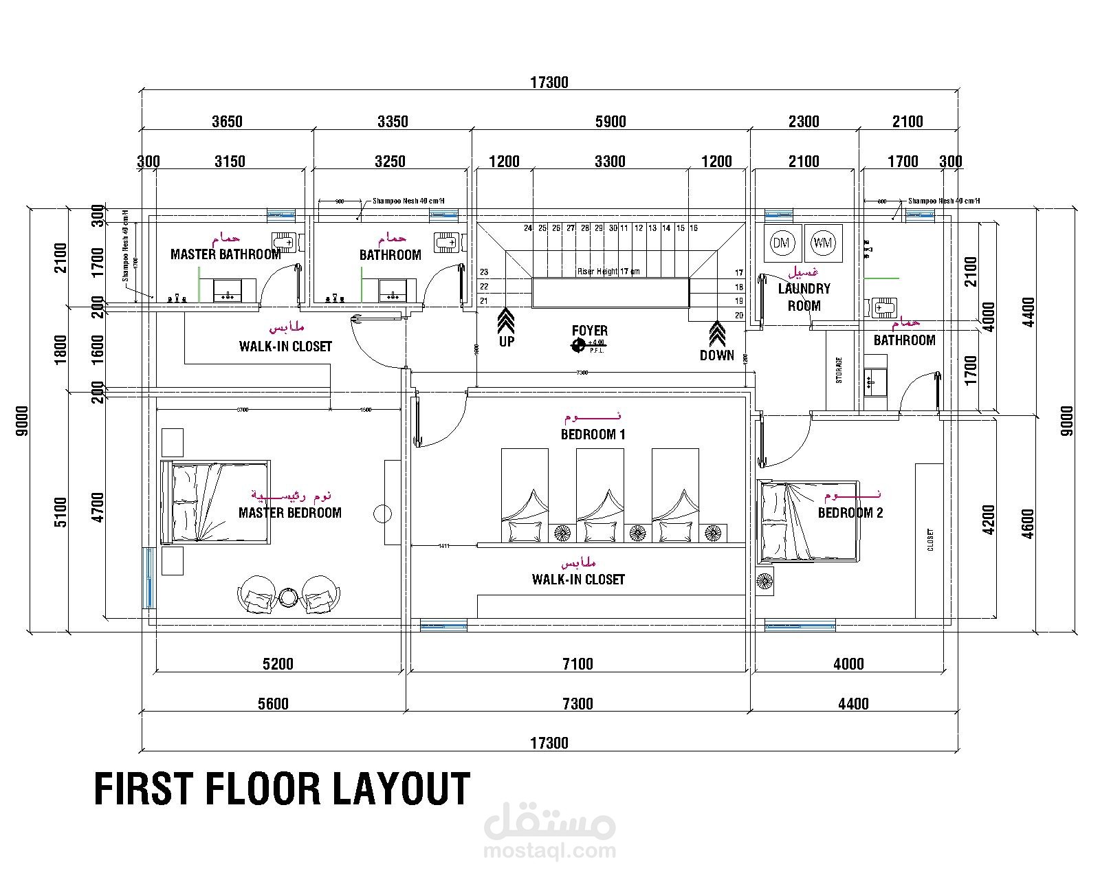 رسم مخطط دوبلكس ذات مساحه 160 متر مربع مسطح بناء.