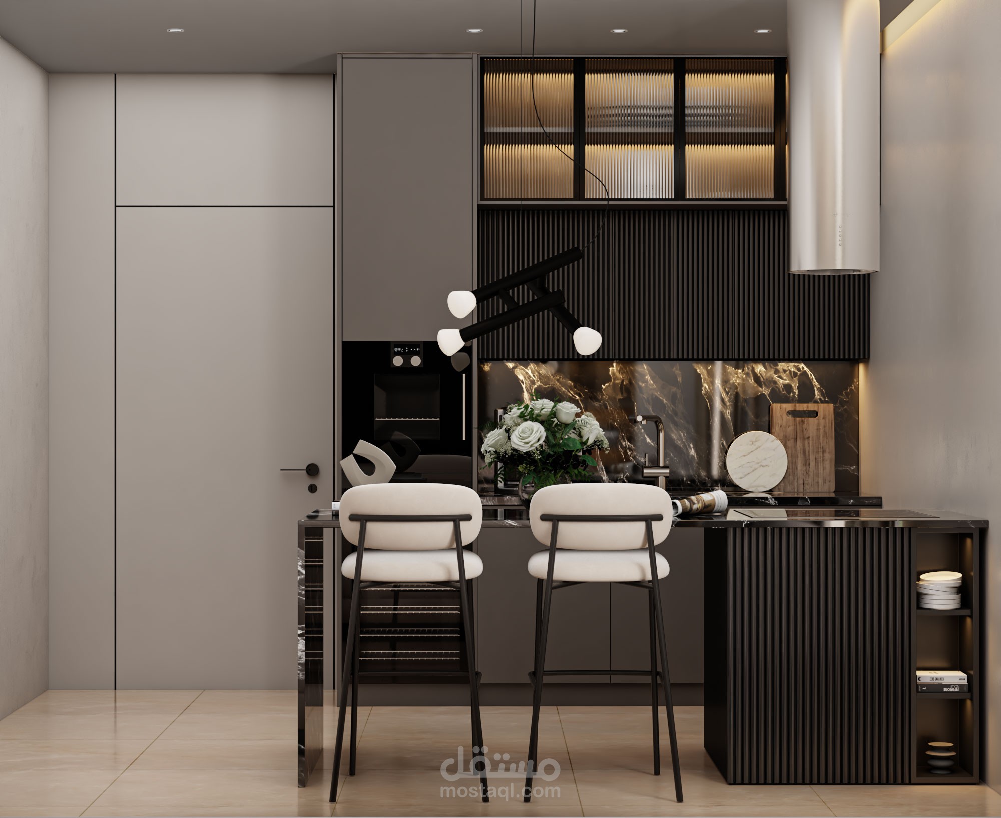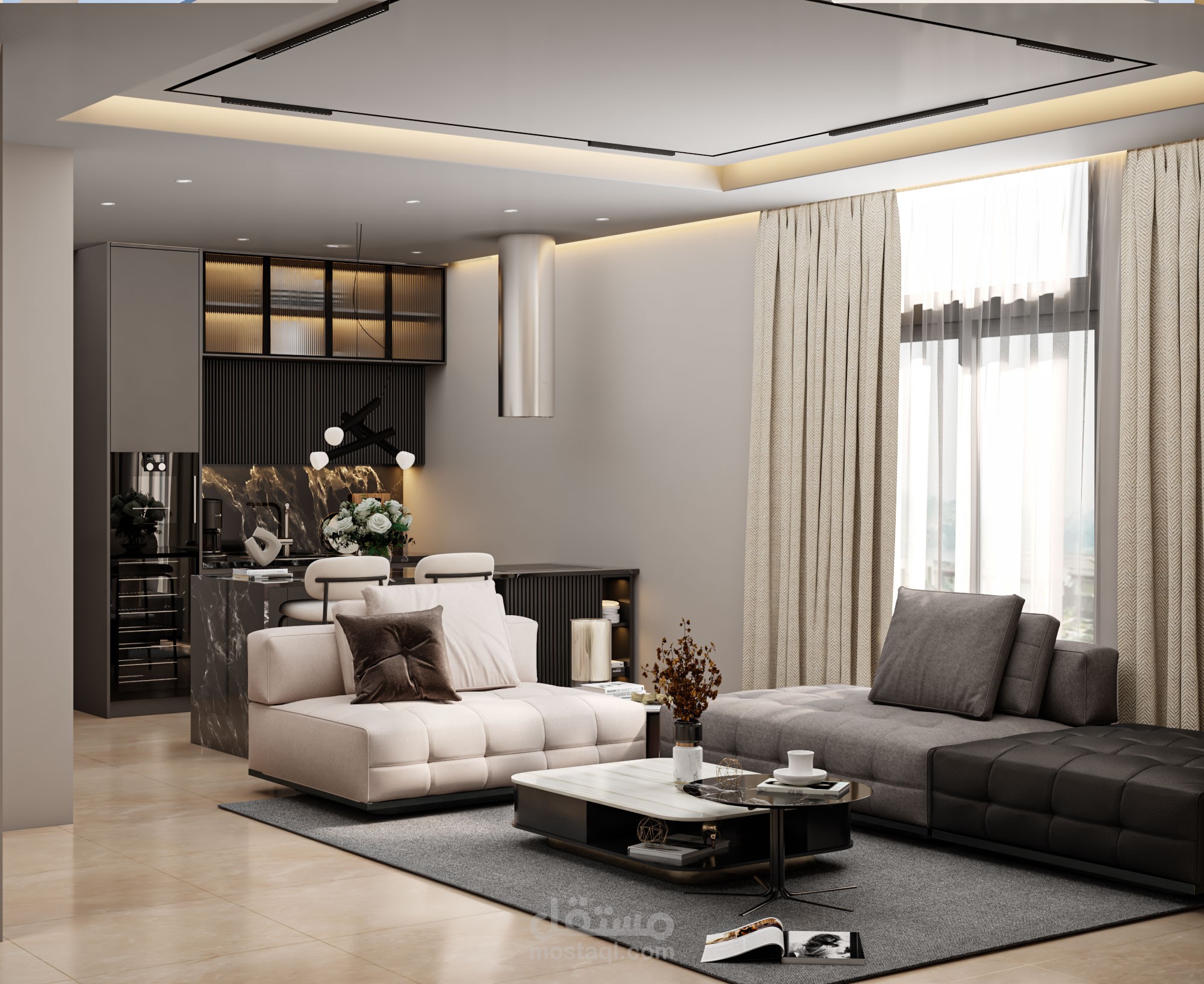 صالة معيشة مع مطبخ مفتوح في السعودية