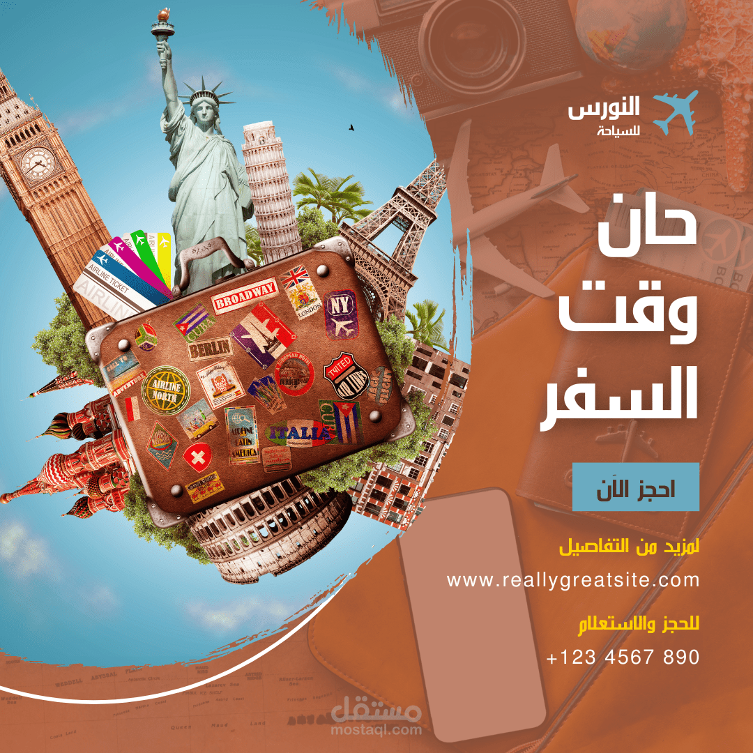 تم تصميم البوستر السياحي بشكل استثنائي ليعكس هدف الشركة ويجذب الانتباه. يتميز البوستر بالتالي: