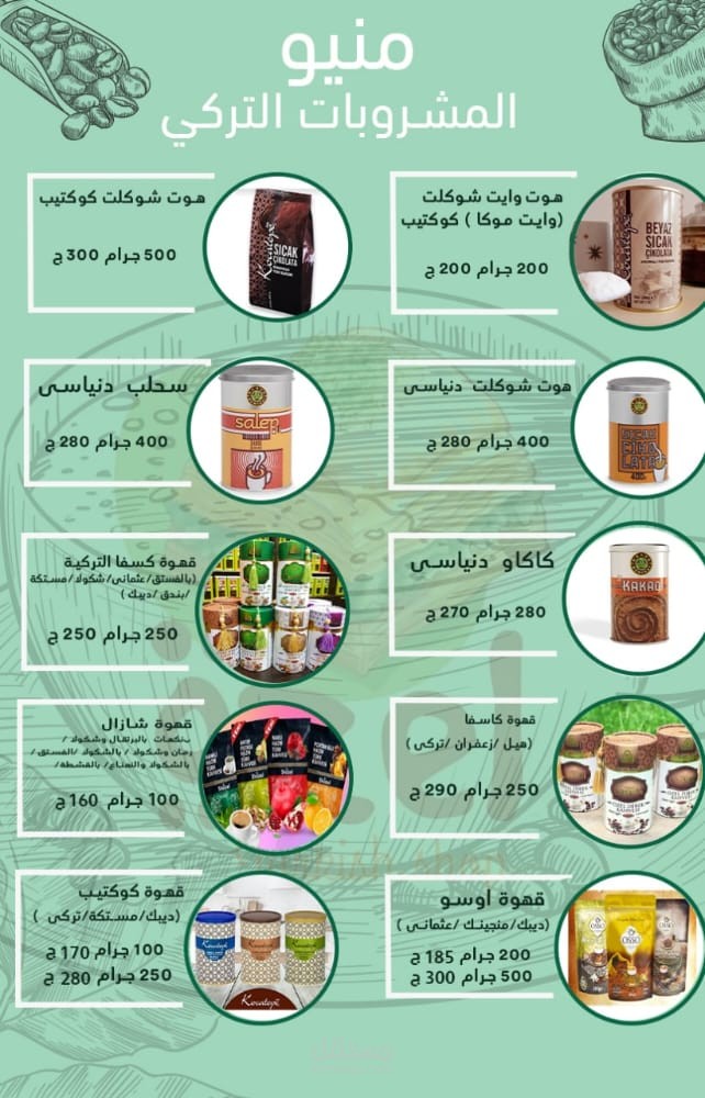 Menu coffee for online store