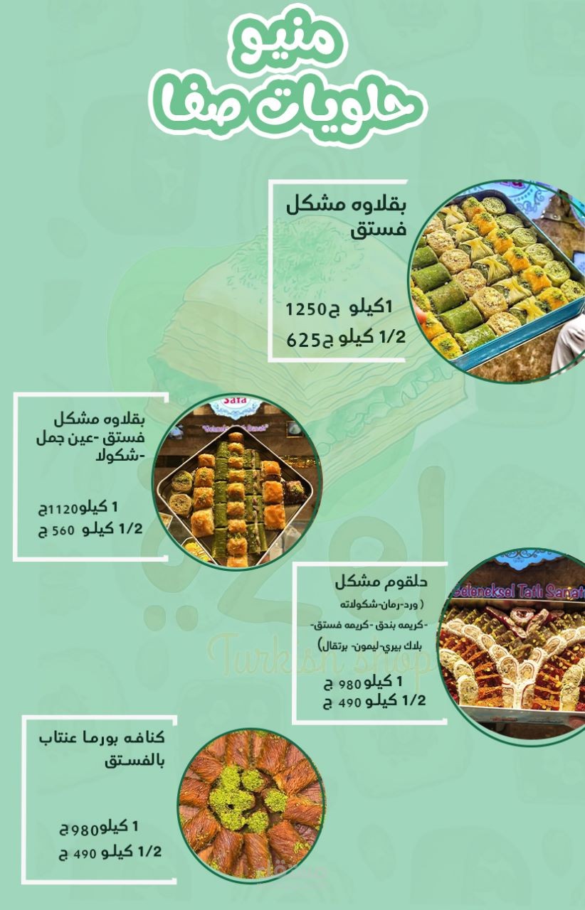 Turkish sweet menu for özel store