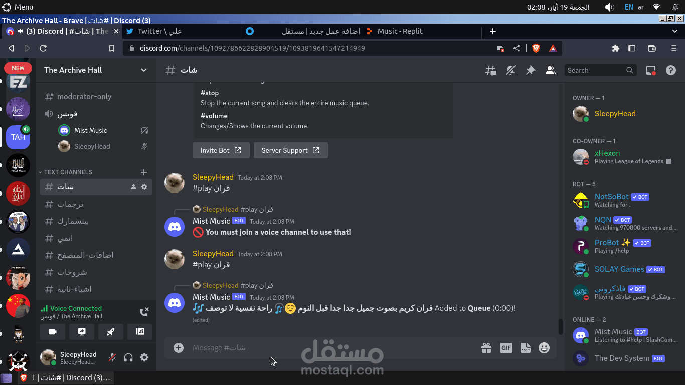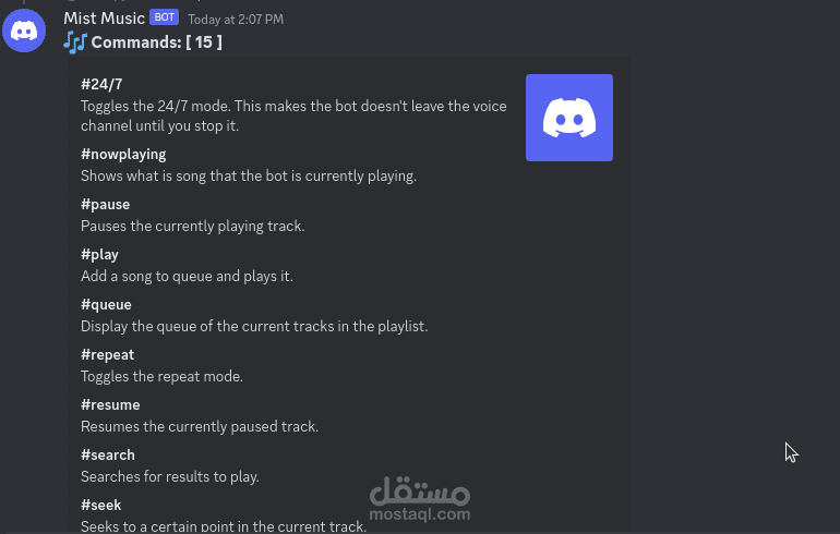 Mist Music Discord Bot Media Player And Song بوت ديسكورد لتشغيل الوسائط الصوتية و الاغاني وغيرهم