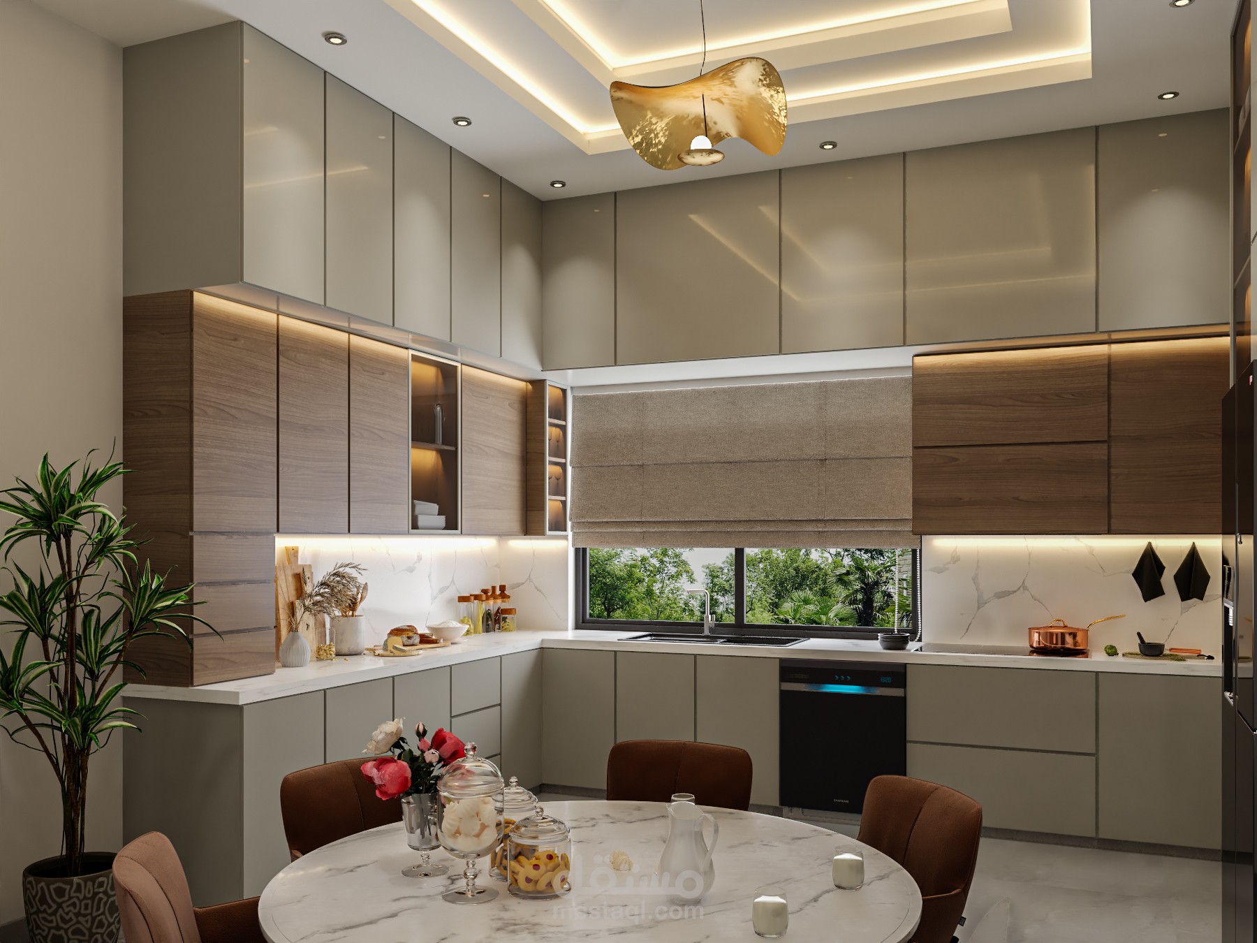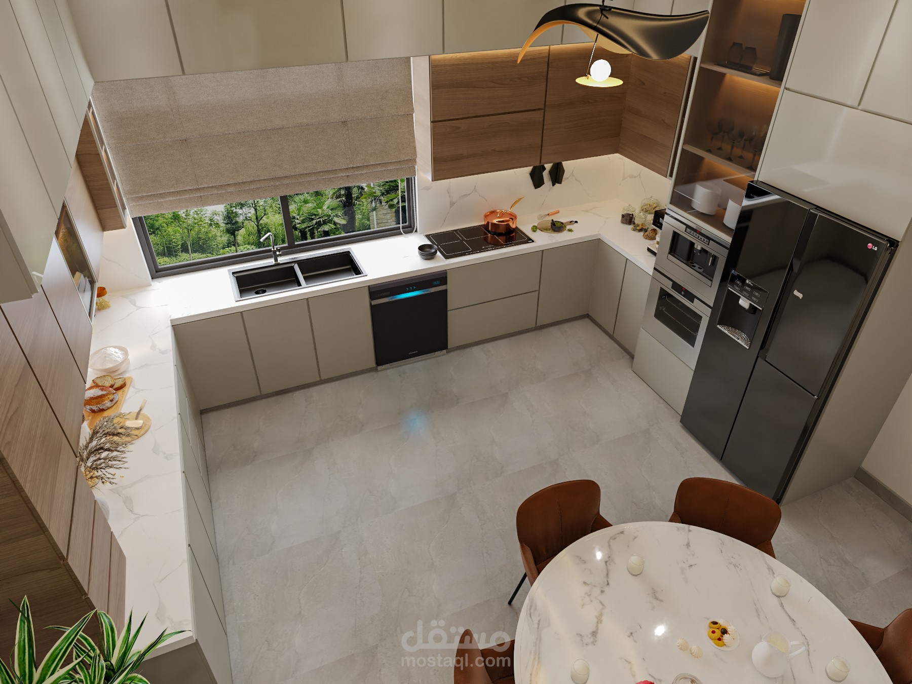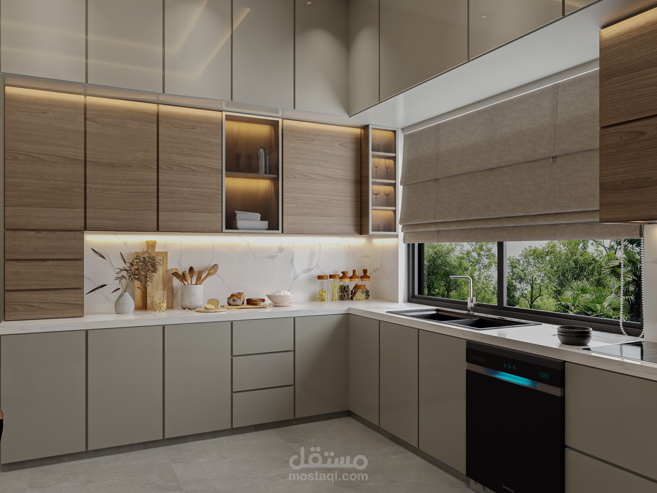 مطبخ مودرن بتفاصيل قليلة ليعطي طابع الأناقة مع الوان هادئة