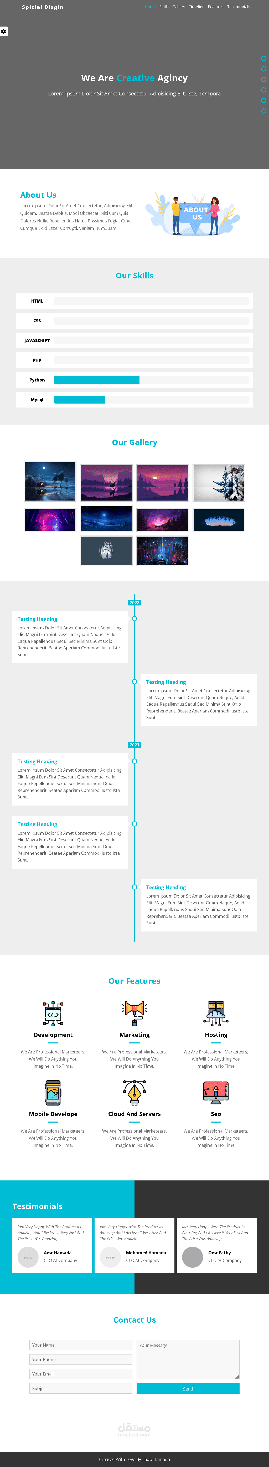 اكتشف العمل الجديد الذي أنجزته، حيث قامت بتصميم موقع استثنائي يتميز بالتفاصيل الجميلة والجاذبية المدهشة. ولإضافة لمسة شخصية للموقع، قمت بتجهيزه بلوحة تحكم بسيطة تسمح للمستخدم بتغيير الخلفية والألوان بكل سهولة، باستخدام قدرات جافا سكريبت المذهلة. استمتع بالتخصيص الكامل والمرونة في تعديل مظهر الموقع وفقًا لذوقك الخاص. انغمس في عالم التصميم المبدع والتفاعلي، واستمتع بتجربة فريدة للمستخدم.