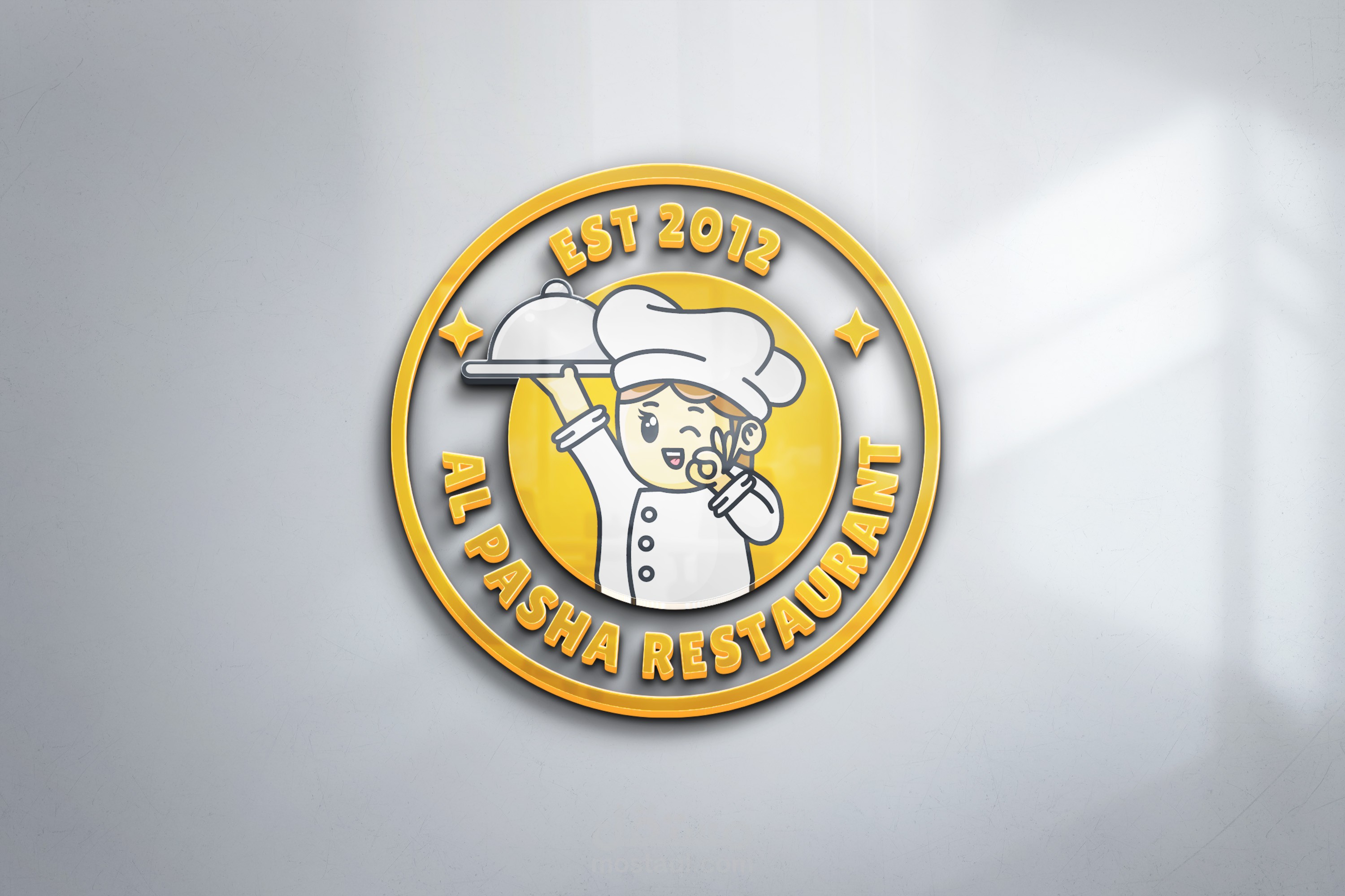 3- الشعار الثالث : يحتوي علي صوره شيف المطعم او اي شيء يشتهر به المطعم ويكون بشكل بارز في الشعار و اي اضافات اخري مثل الاسم او سنه التاسيس تستخدمه اذا اردت ان تعبر عن انك محترف في منتج معين بشكل افضل احترافيه عن بقيت المنتجين