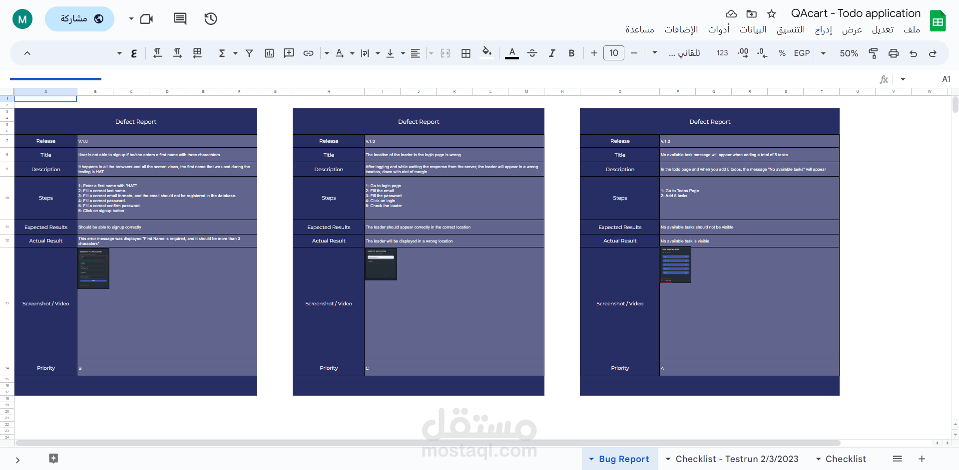 انشاء تقارير الاخطاء بالتفصيل لتسهيل عملية انتاج الخطأ باستخدام Excel sheets او Trello