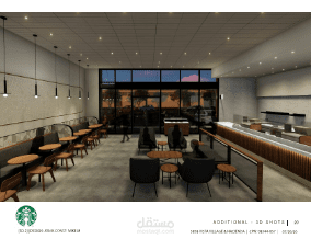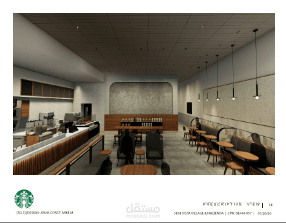 قمت بالتصميم الداخلى للكافى و الرسم التنفيذى له مراعيا اكواد البناء و التصاميم بكاليفورنيا و قمت بتصميم الكتله خارجيا بجميه متطلبات العميل بعد الاتفاق و الموافقه على المود بورد.