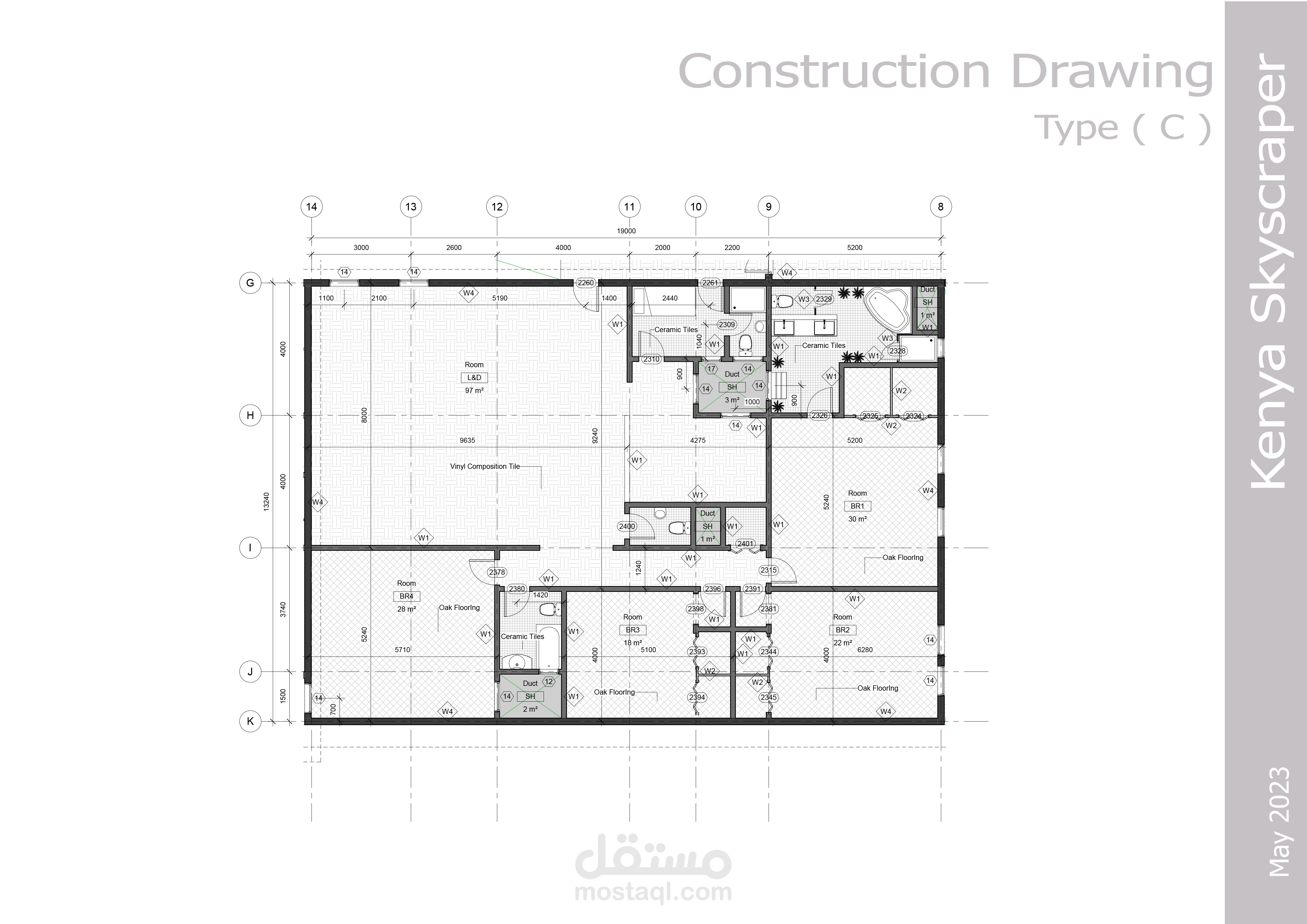 يتميز المبنى بوجود طابقين تجاريين في الأسفل، وهو مخصص بشكل رئيسي للأغراض السكنية في الطوابق العلوية. يتكون كل طابق من 7 وحدات سكنية تتراوح مساحتها بين 86 متر مربع و265 متر مربع.