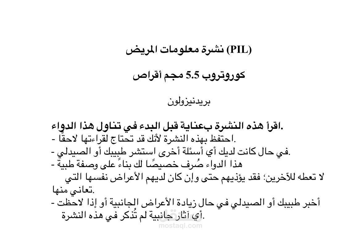 ترجمة من اللغة الإنجليزية للعربية لنشرة دواء Corotrope.