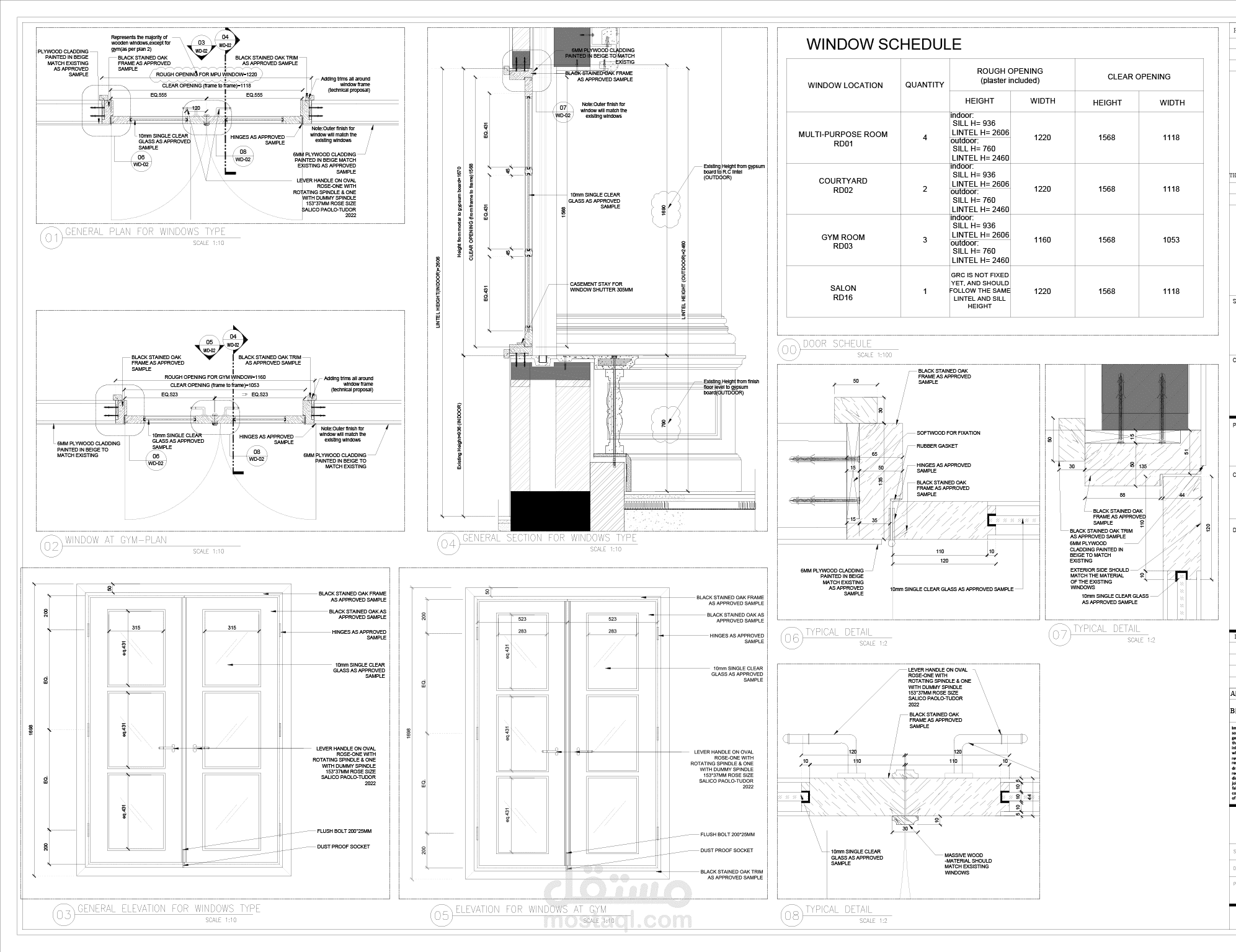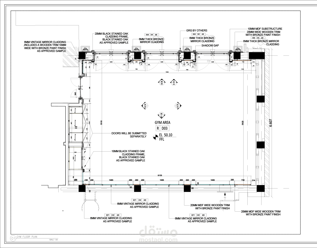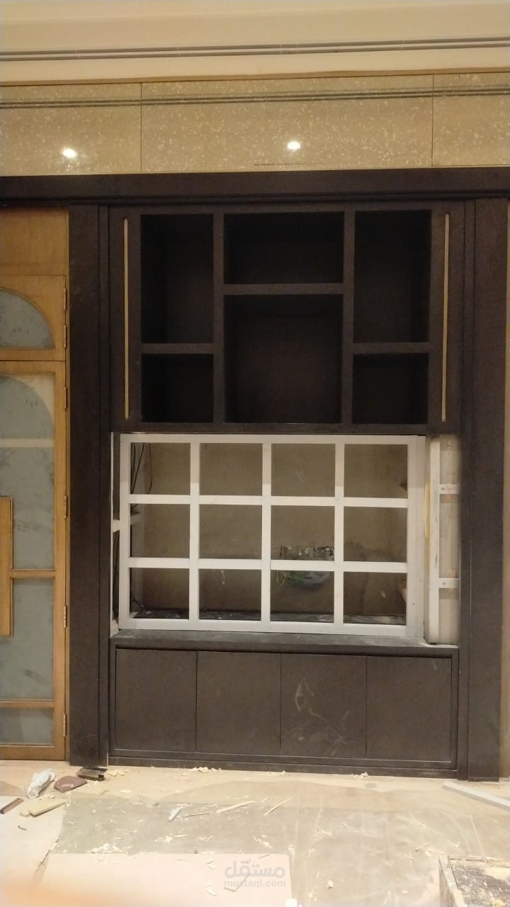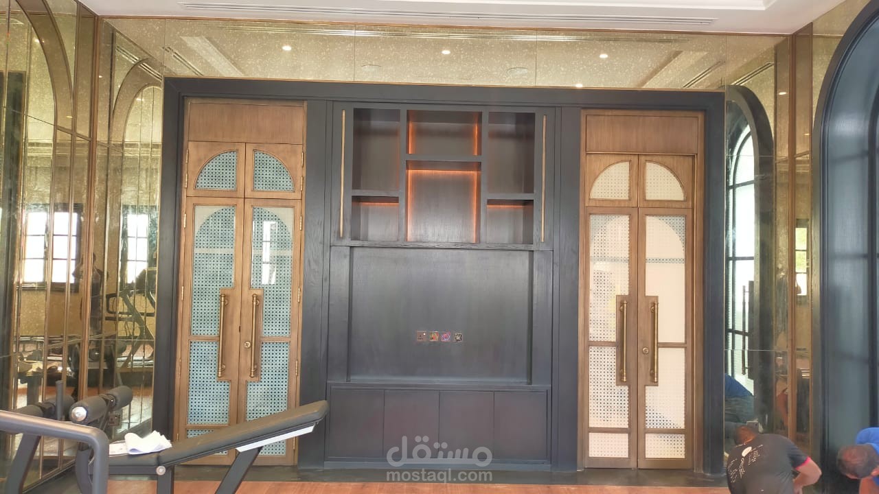 الرسومات التنفيذيه للجيم و الصالون و الحمامات جميع الاعمال الخشبيه من التجاليد و الوحدات الخشبيه و الابواب