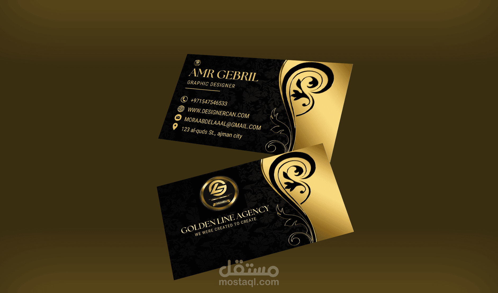 تصميم لوجو وهوية بصرية مع نماذج لبوست السوشيال ميديا لشركة الخط الذهبي في دبي