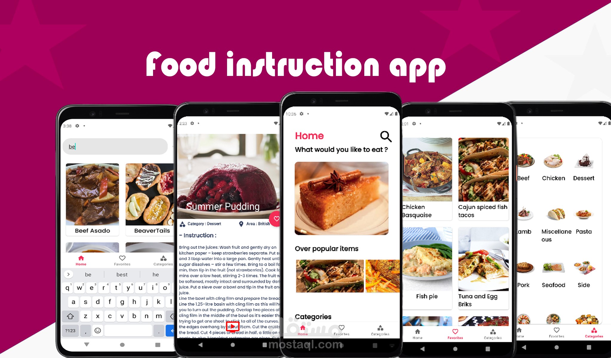 Food instructions app that provides you most food instructions of your favorite meals , you add any meal you like your favorite list , and also search for any meal you want to follow its instructor