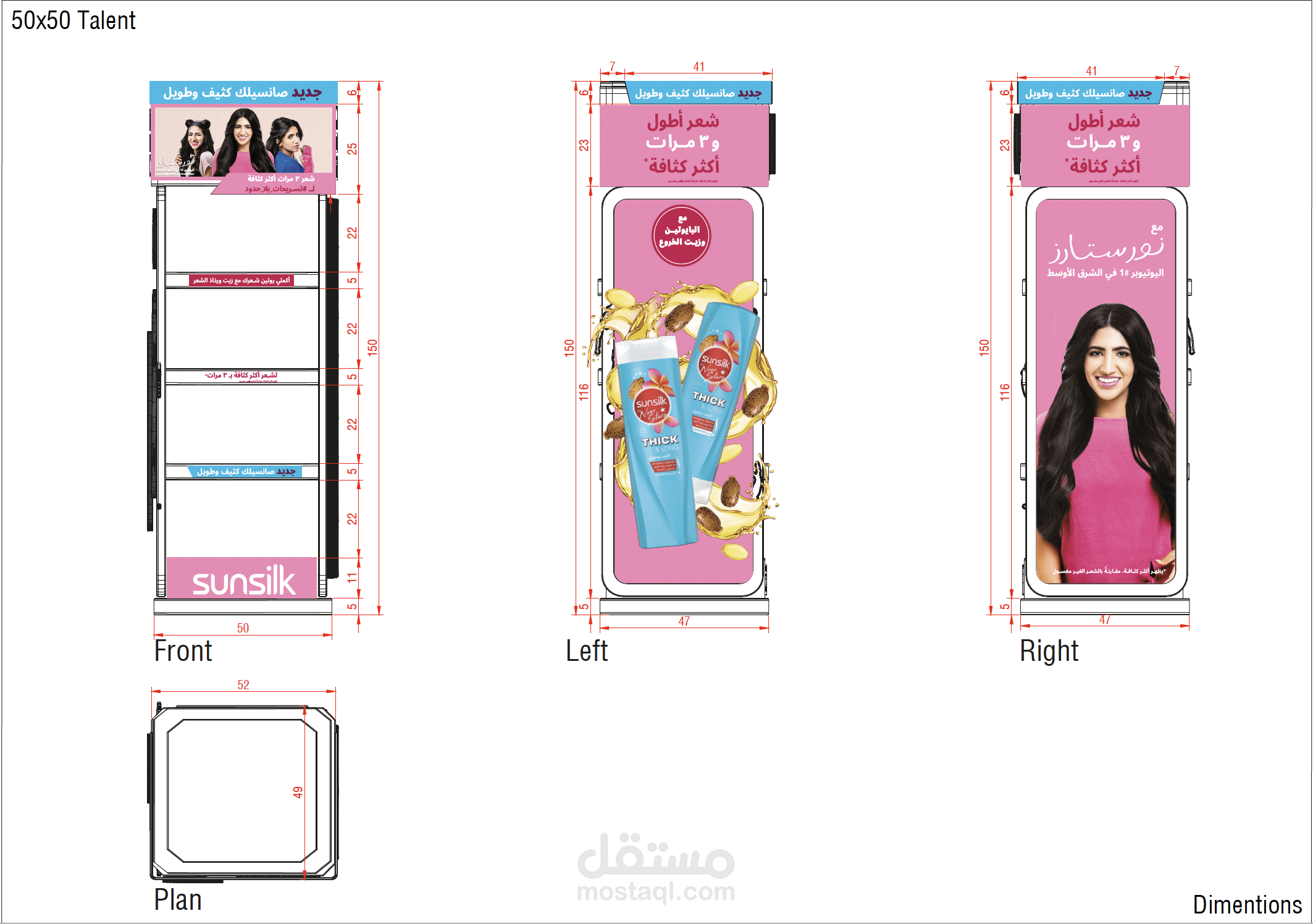 تم إعطائي إعلانين رئيسيين وقياسات ستاندات وبناء على المعطيات تم تنفيذ الحملة كاملة بجميع القياسات واللغات.