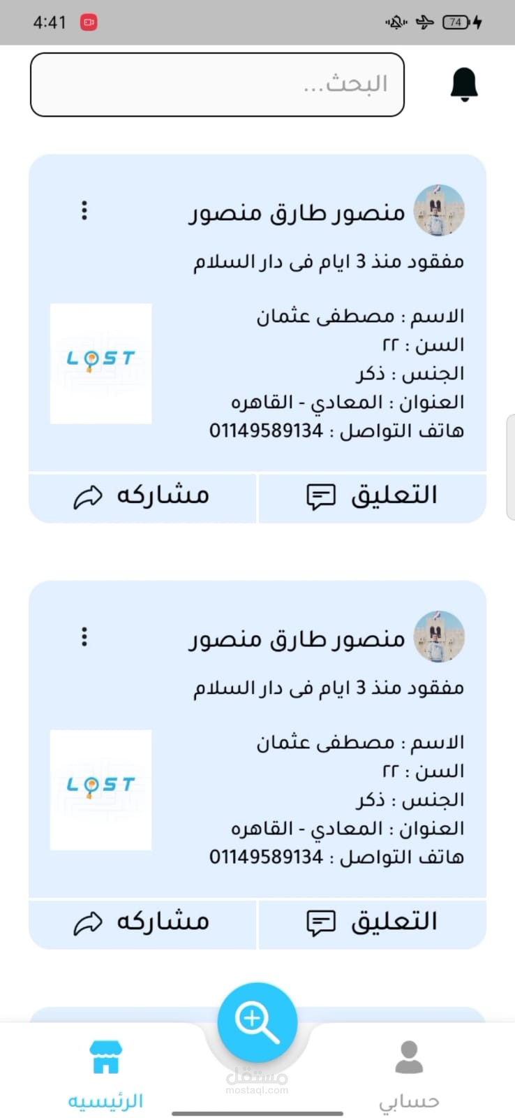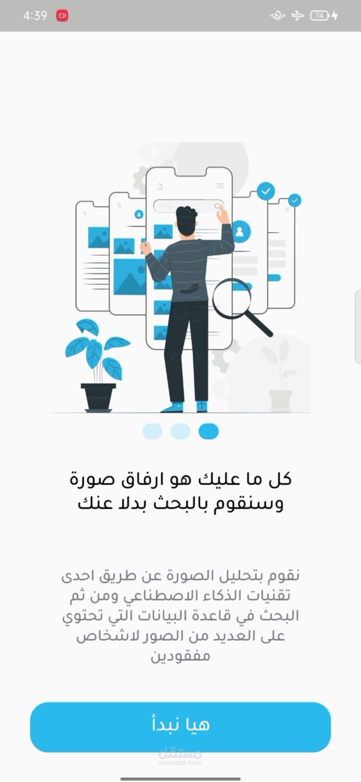 برنامجنا المحمول هو برنامج يعتمد على الذكاء الاصطناعي للمساعدة في العثور على الأشخاص المفقودين من خلال التعرف على الوجه. يهدف البرنامج إلى توفير وسيلة فعالة وموثوقة للمساعدة في عمليات البحث والإنقاذ.