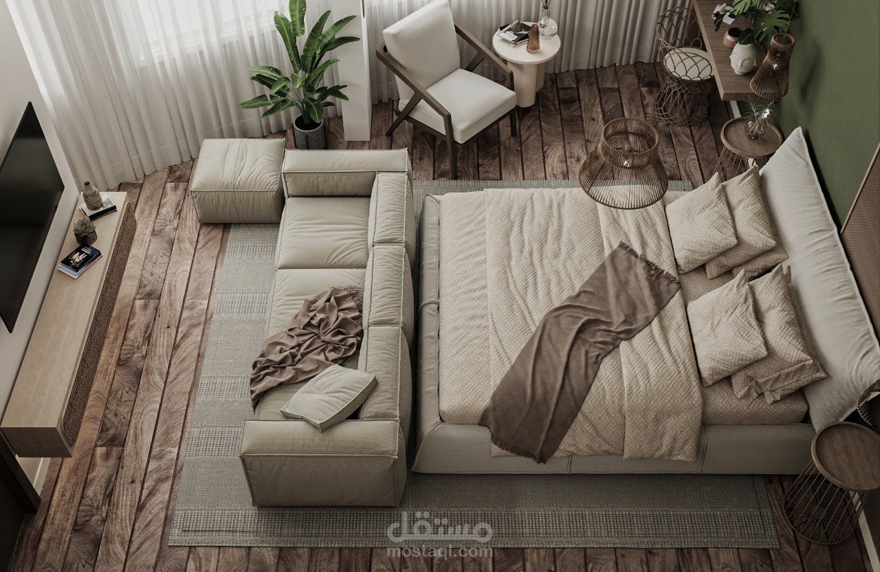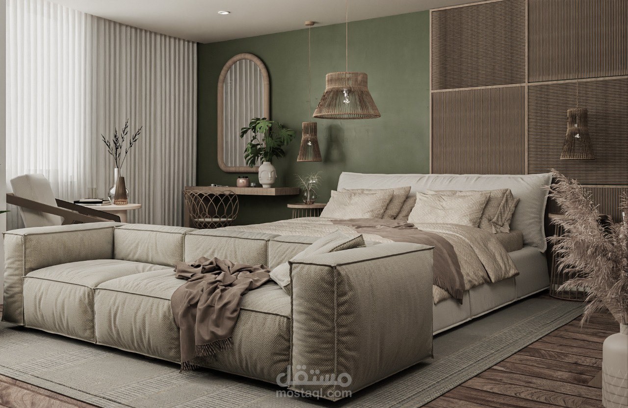The project is generally based on the design of a bedroom- boho style