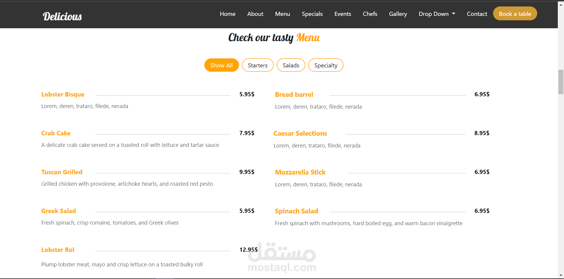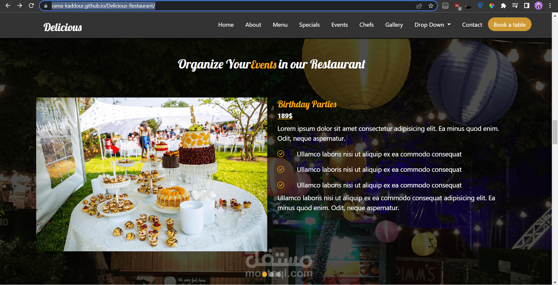 الموقع يحتوي على الكثير من التفاصيل الخاصة بالمطعم