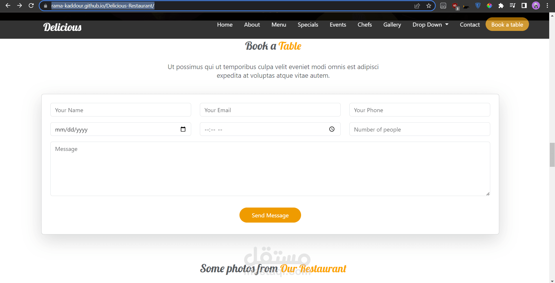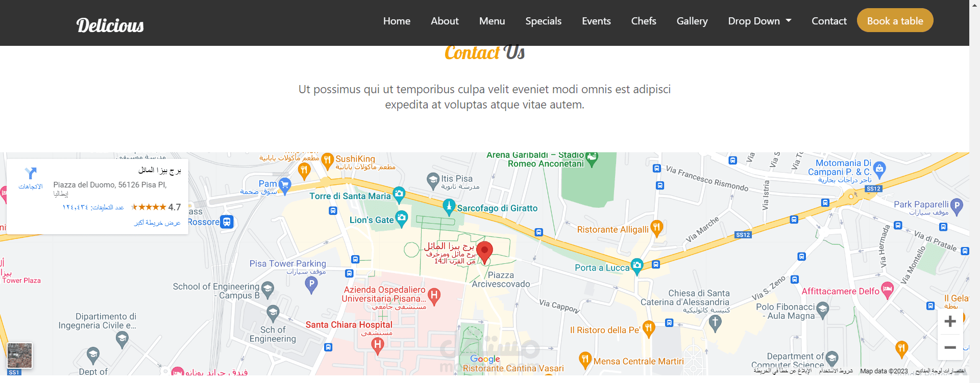 الموقع الخاص بالمطعم