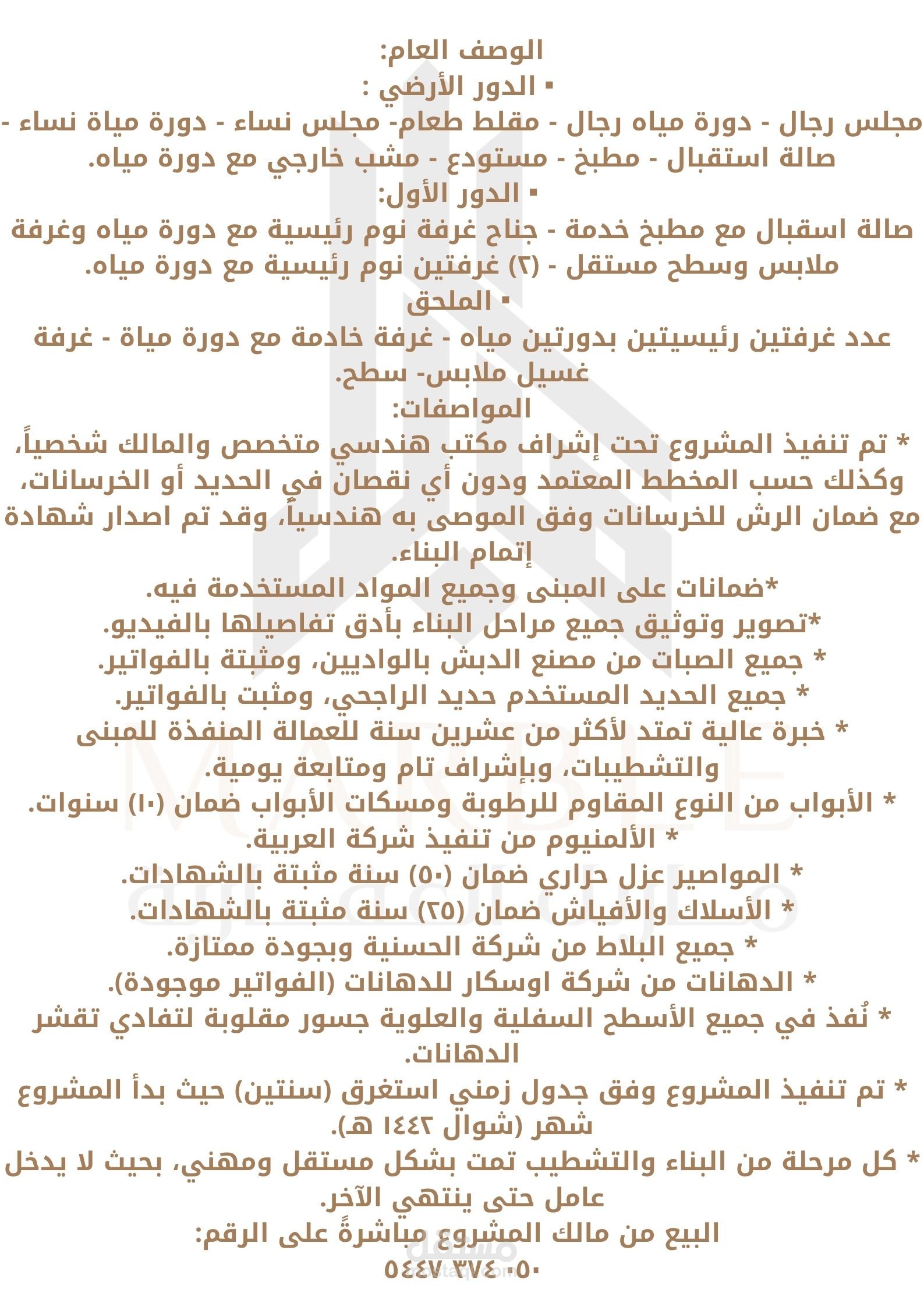 اعلان لبيع فلل مع توافر كافه المواصفات والبيانات