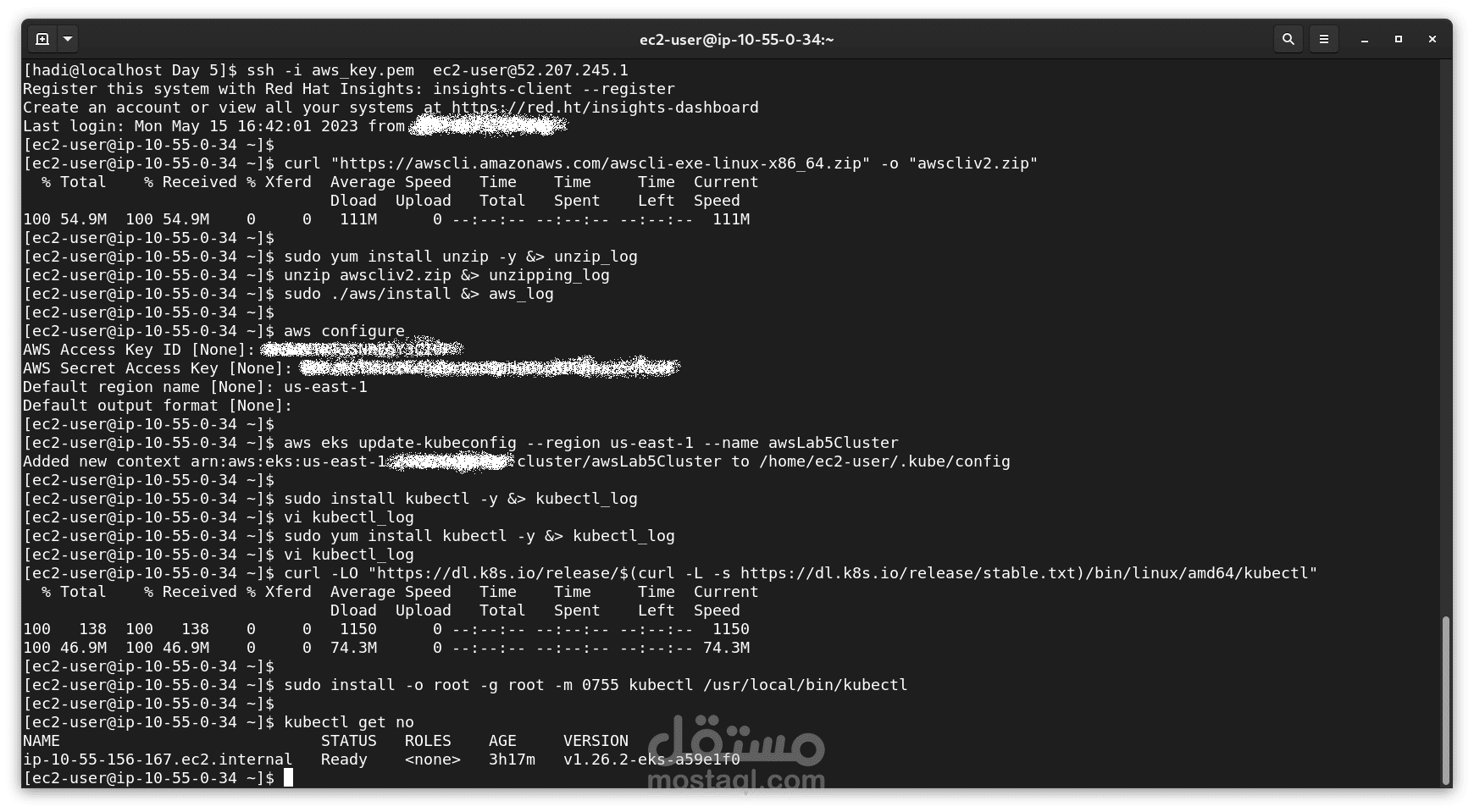 - SSH to the jump host, and access the cluster (after installing & configuring aws and kubectl").