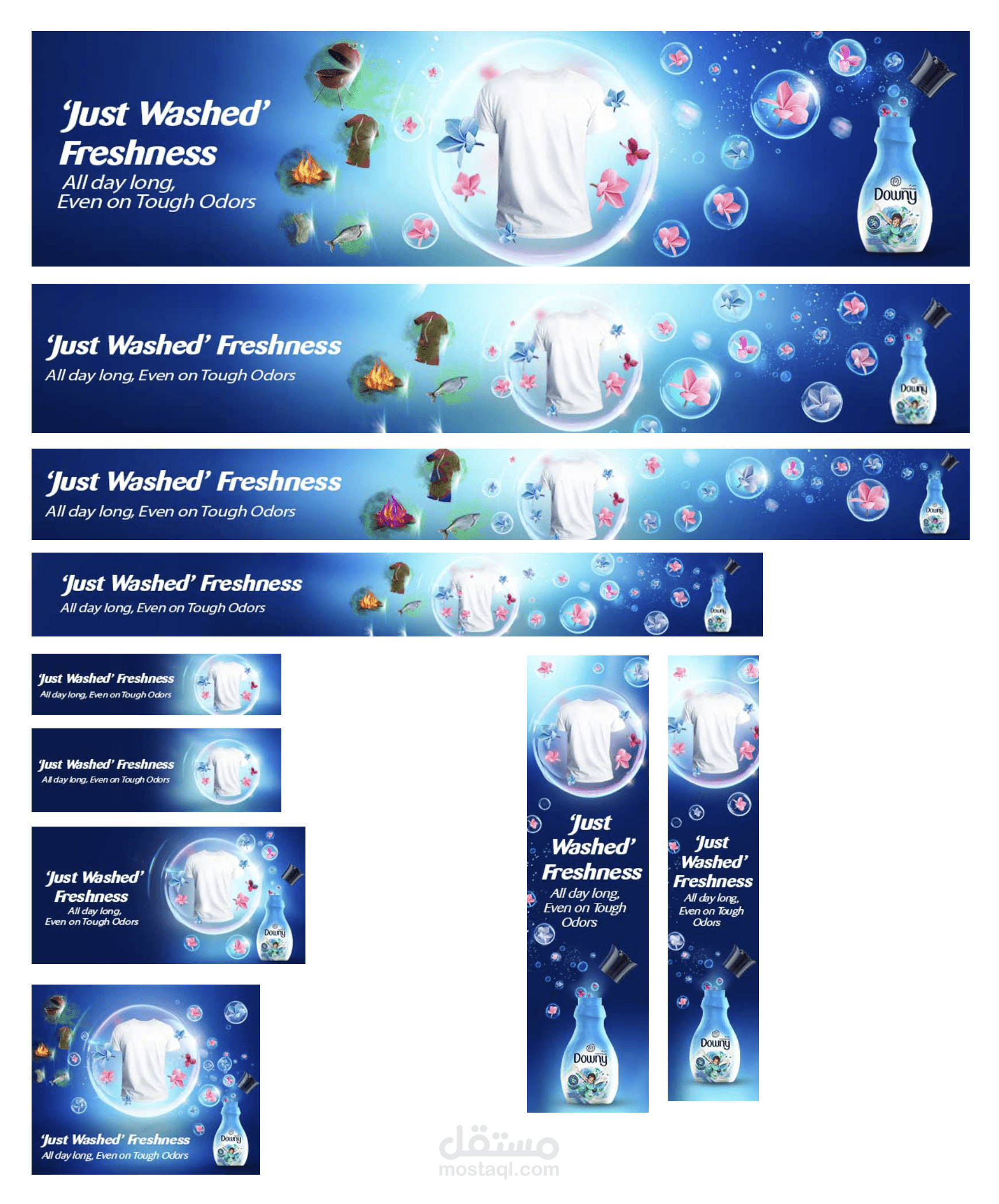 تم ارسال الملف الاساسي من العميل وبناء على الطلب تم تنفيذ مجموعة اعلانات اونلاين بقياسات مختلفة.