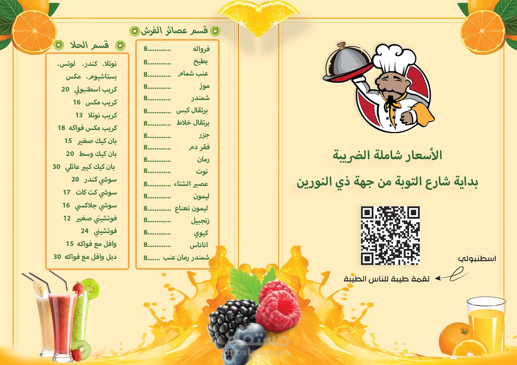 تصميم مينو مطعم + مينو عصير