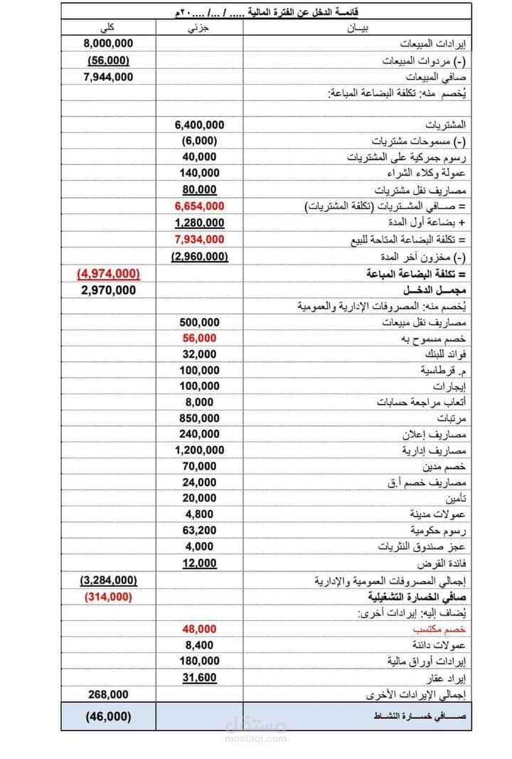 القدرة على اعداد قوائم الدخل للشركات التجارية