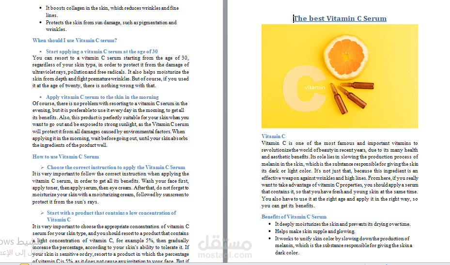 كتابة مقال باللغة الانجليزية حول مميزات فيتامين سي سيروم