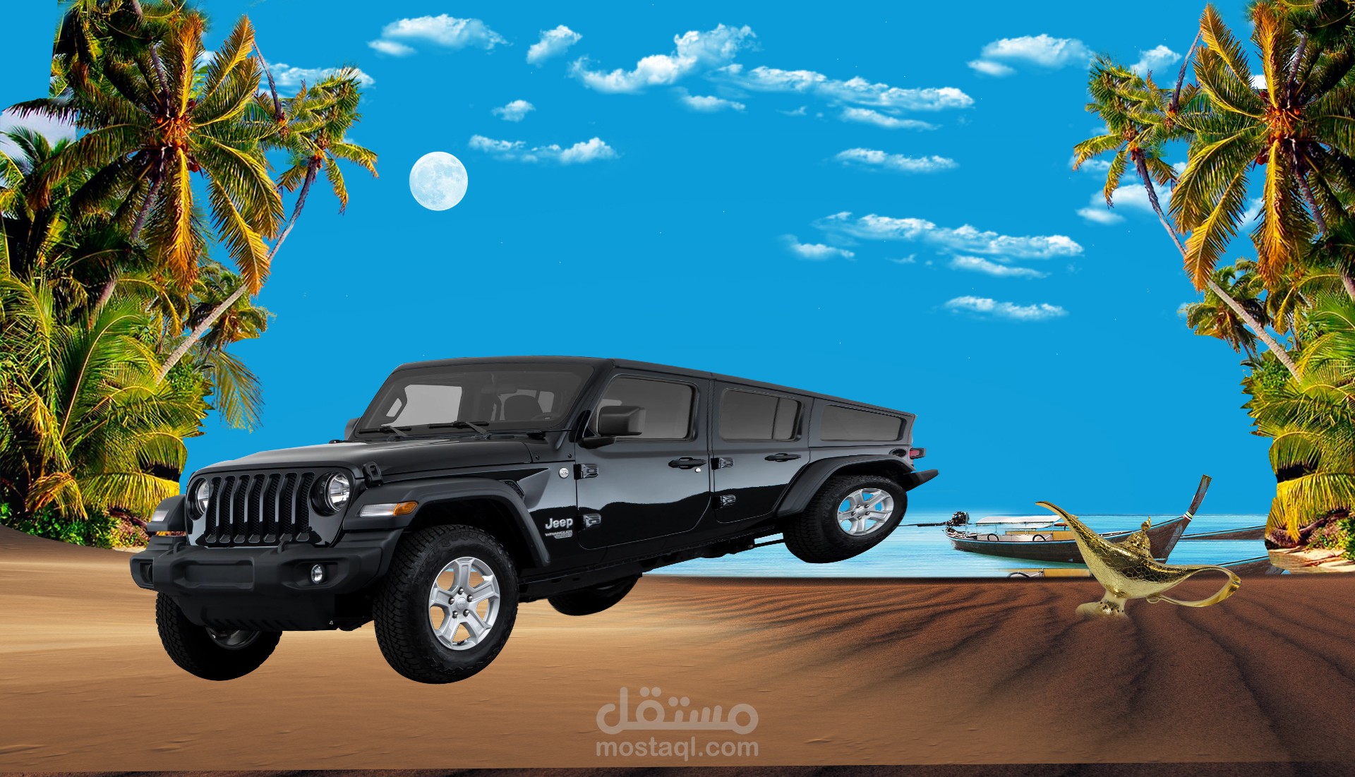 يتحدث العمل عن اعلان غير رسمي لشركة سيارات تدعى Jeep وجعلت السيارة تخرج من مصباح علاء الدين وكأنها تحقق كل مشاويرك كما يفعل علاء الدين من تحقيق أمنياتك