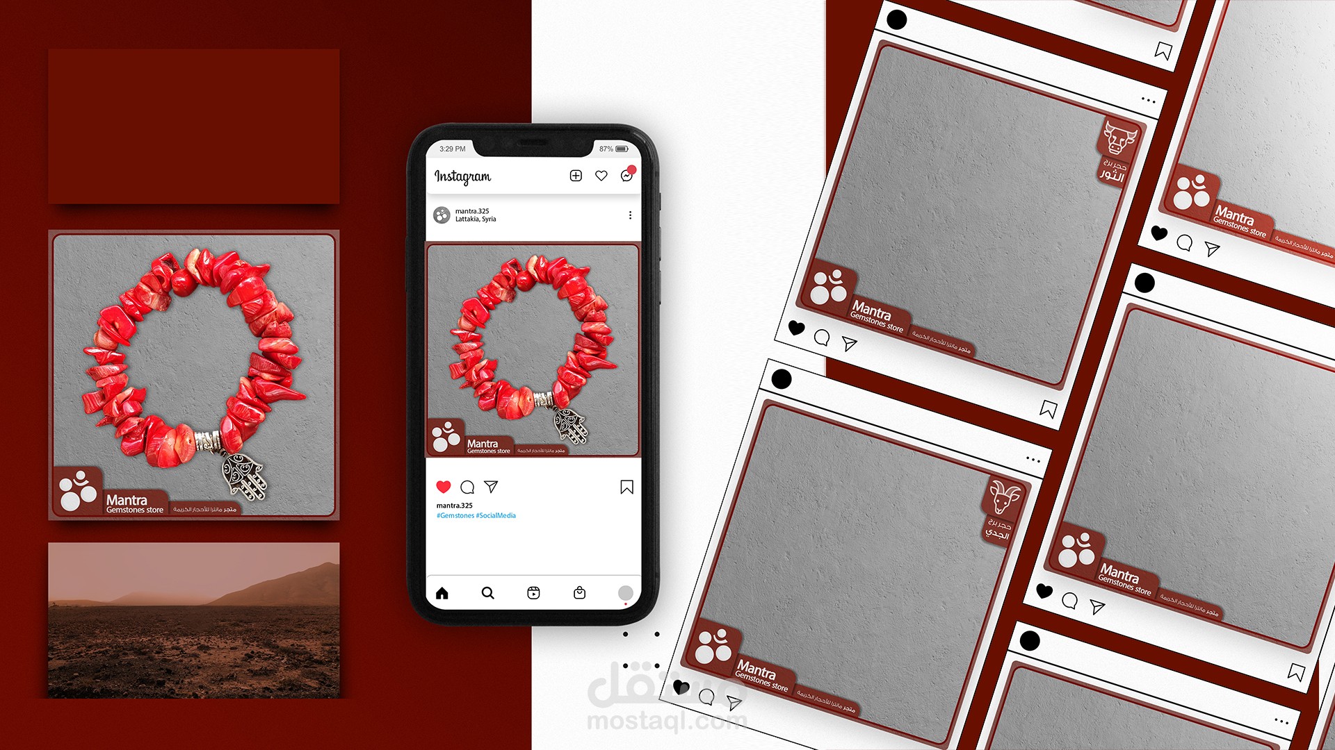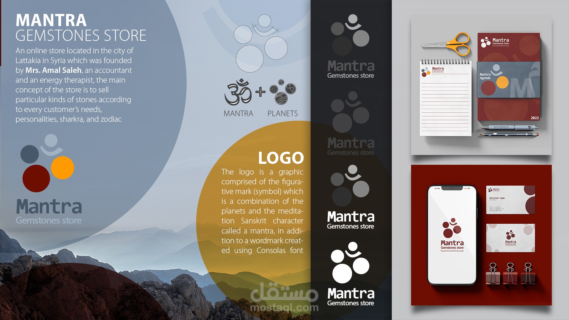 مشروع تصميم هوية بصرية لمتجر مانترا للأحجار الكريمة يهدف إلى إنشاء تمثيل بصري مميز يعكس جوهر المتجر ويجذب انتباه العملاء المحتملين. تم استخدام الألوان الأحمر والأصفر والأزرق كألوان رئيسية للتصميم، والأشكال الدائرية لإضافة رونق وتناغم إلى العناصر المرئية.