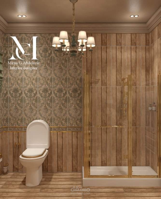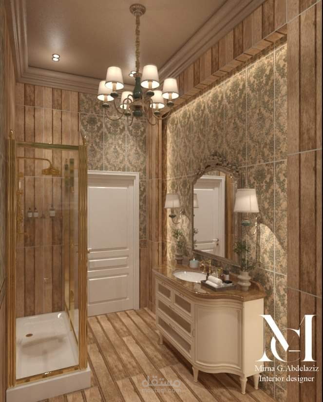 حمام علي الطراز الكلاسيكي باستخدام سيواميك بلاتينو والحفاظ علي باليت الوان محدده