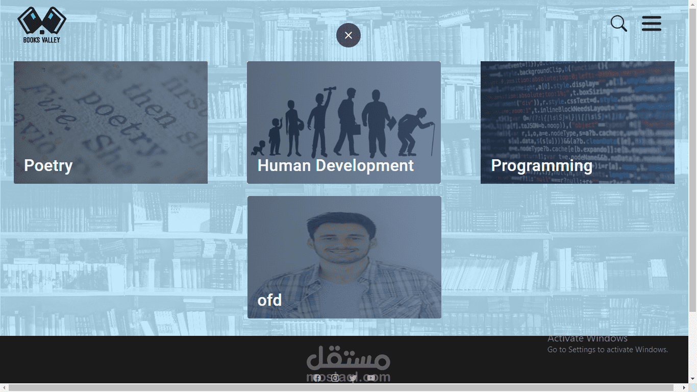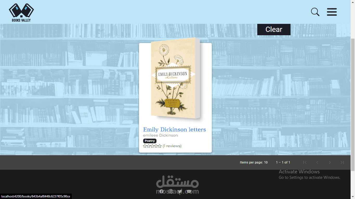 2- الواجهة الأمامية مبنية باستخدام Angular لعرض صفحات الكتب والبحث عن الكتب